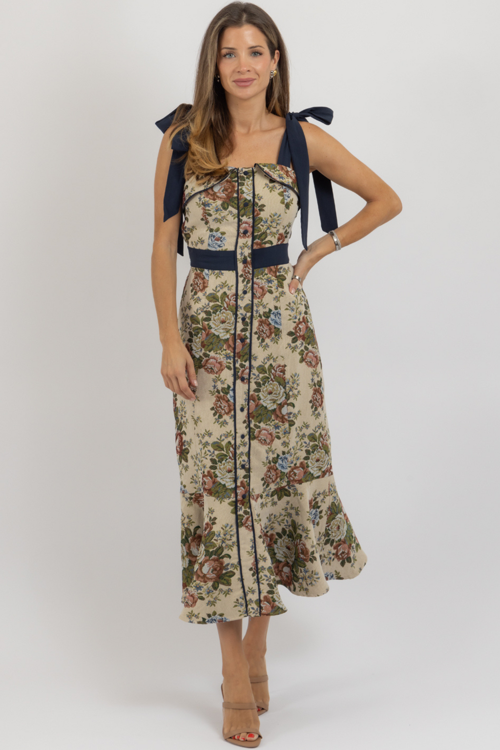 GABI BEIGE CONTRAST MIDI DRESS