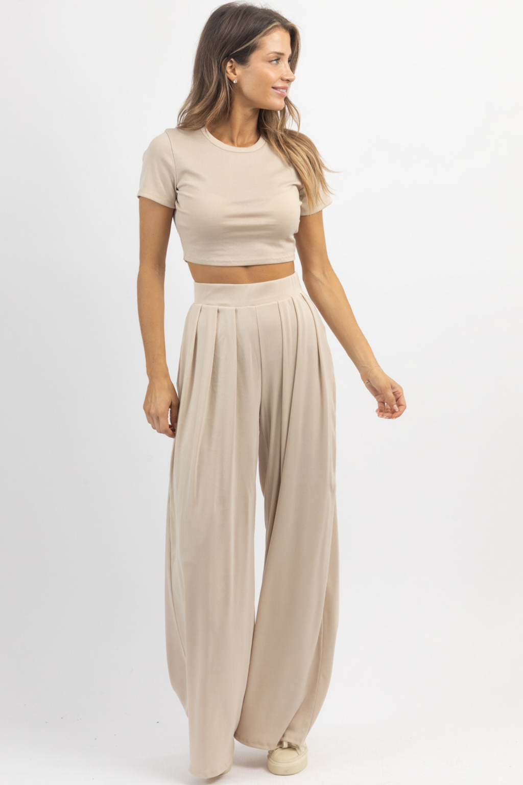 CREAM CORA WIDE-LEG LOUNGE PANT