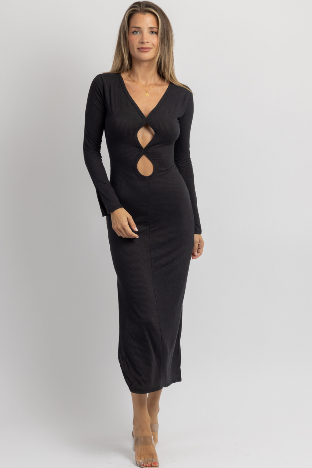 AURA BLACK FLARE SLEEVE MIDI DRESS
