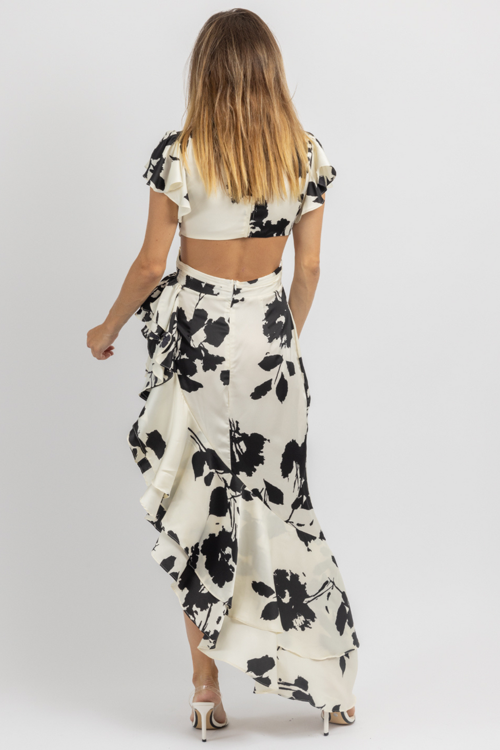 HALSEY RUST FLORAL HALTER MAXI DRESS