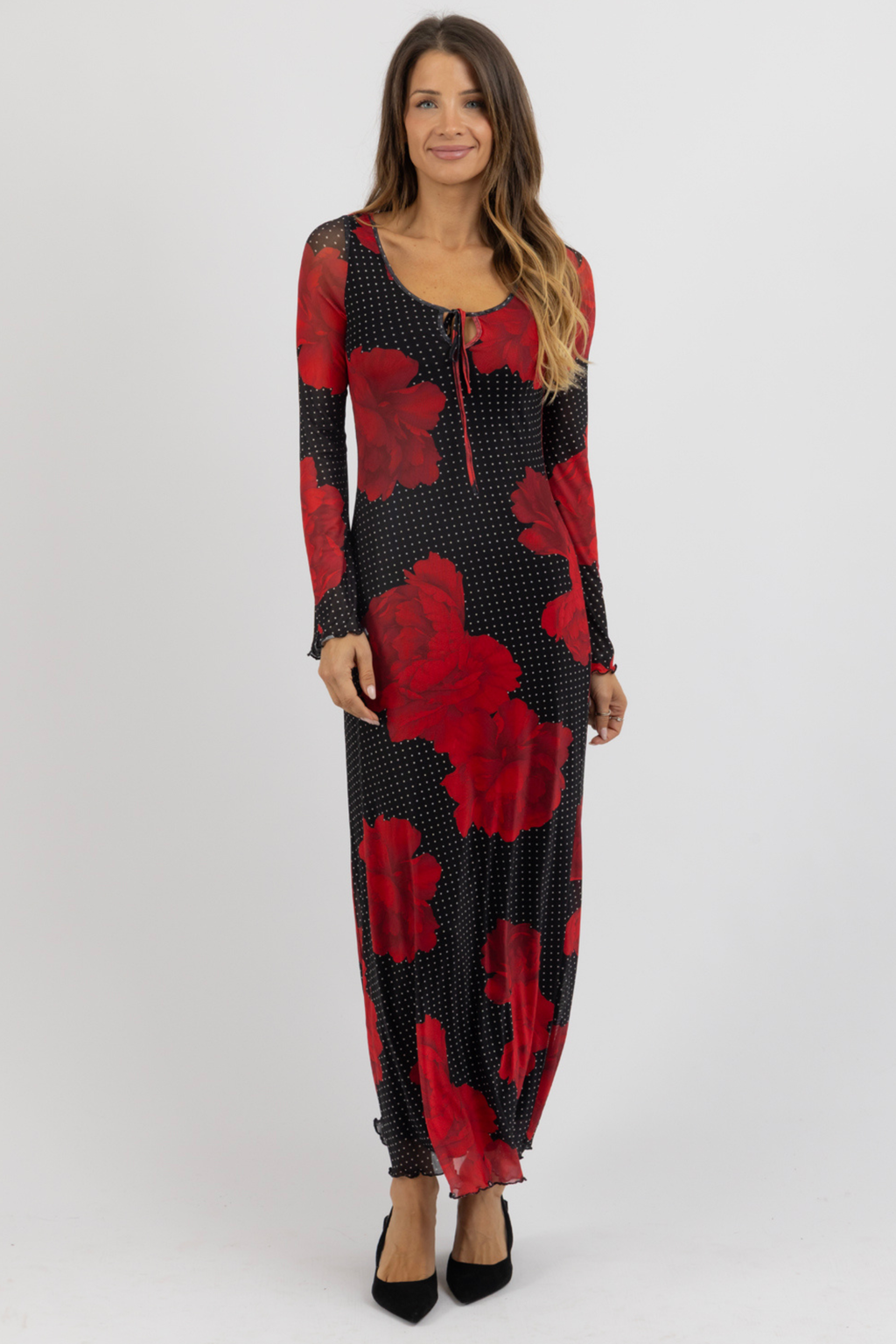 LAVENDER + BLUE FLORAL WRAPPED MIDI DRESS