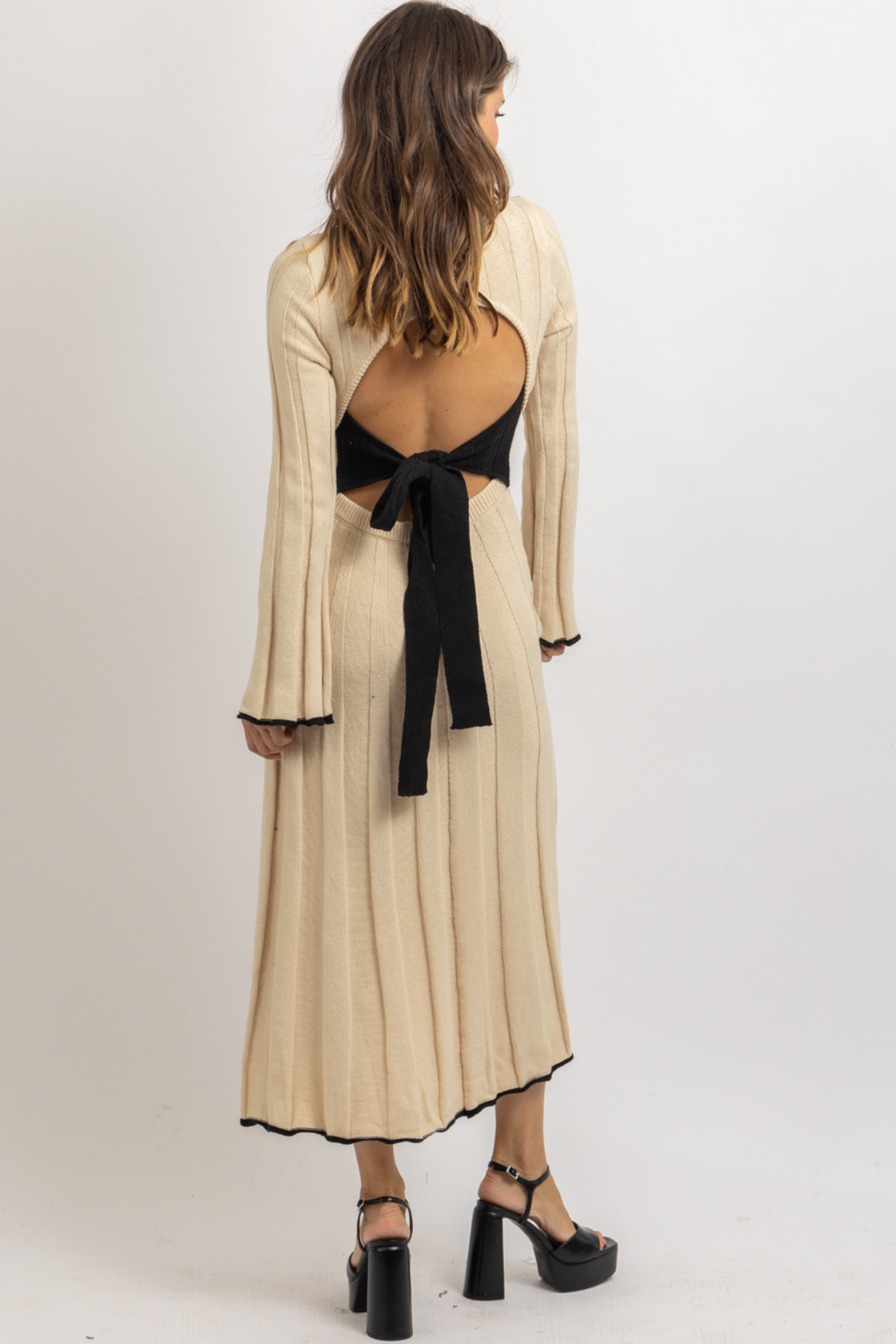 KHAKI LONGSLEEVE CIRCLET CUTOUT MIDI DRESS