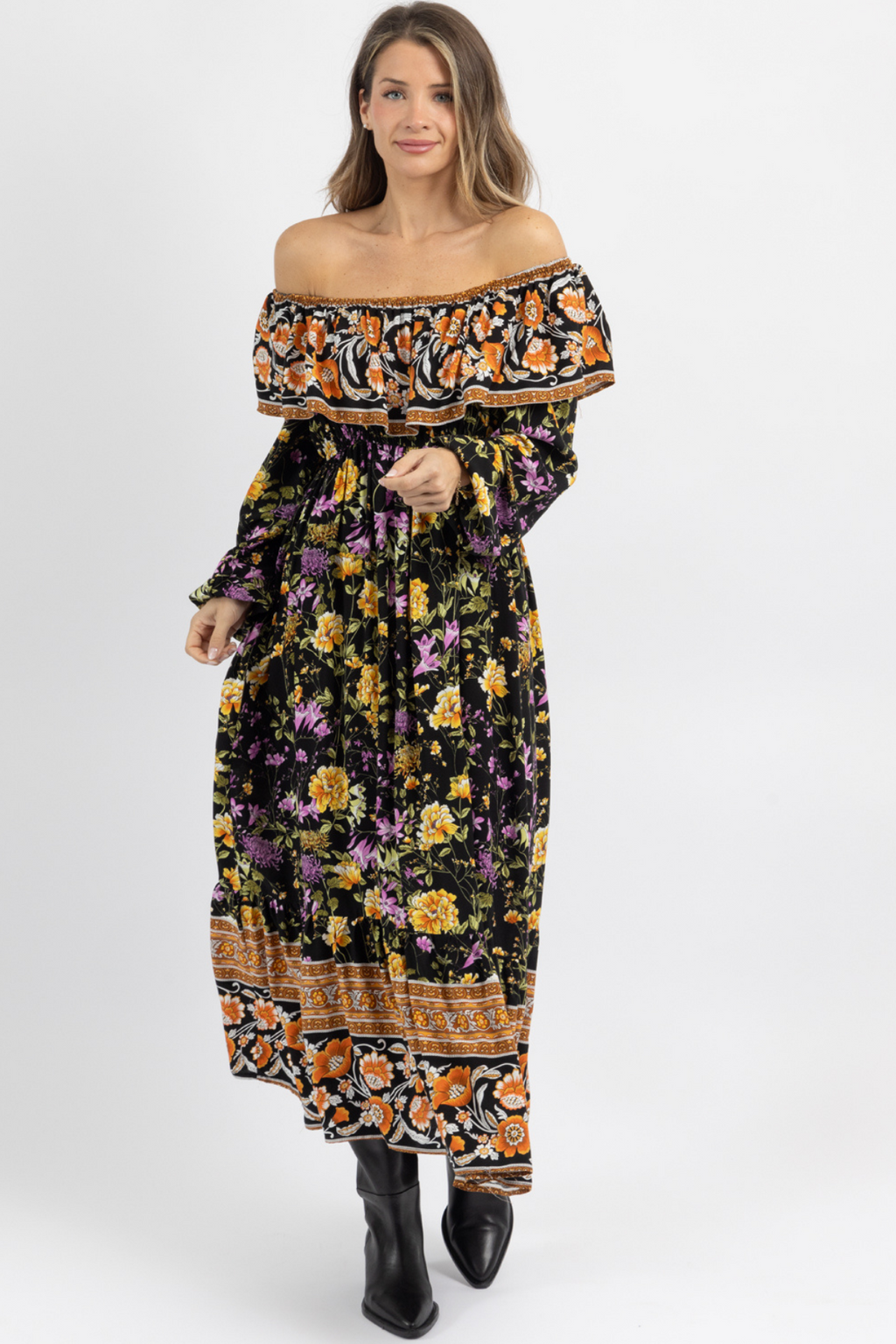 SOPHIE BLACK OFF SHOULDER MAXI DRESS
