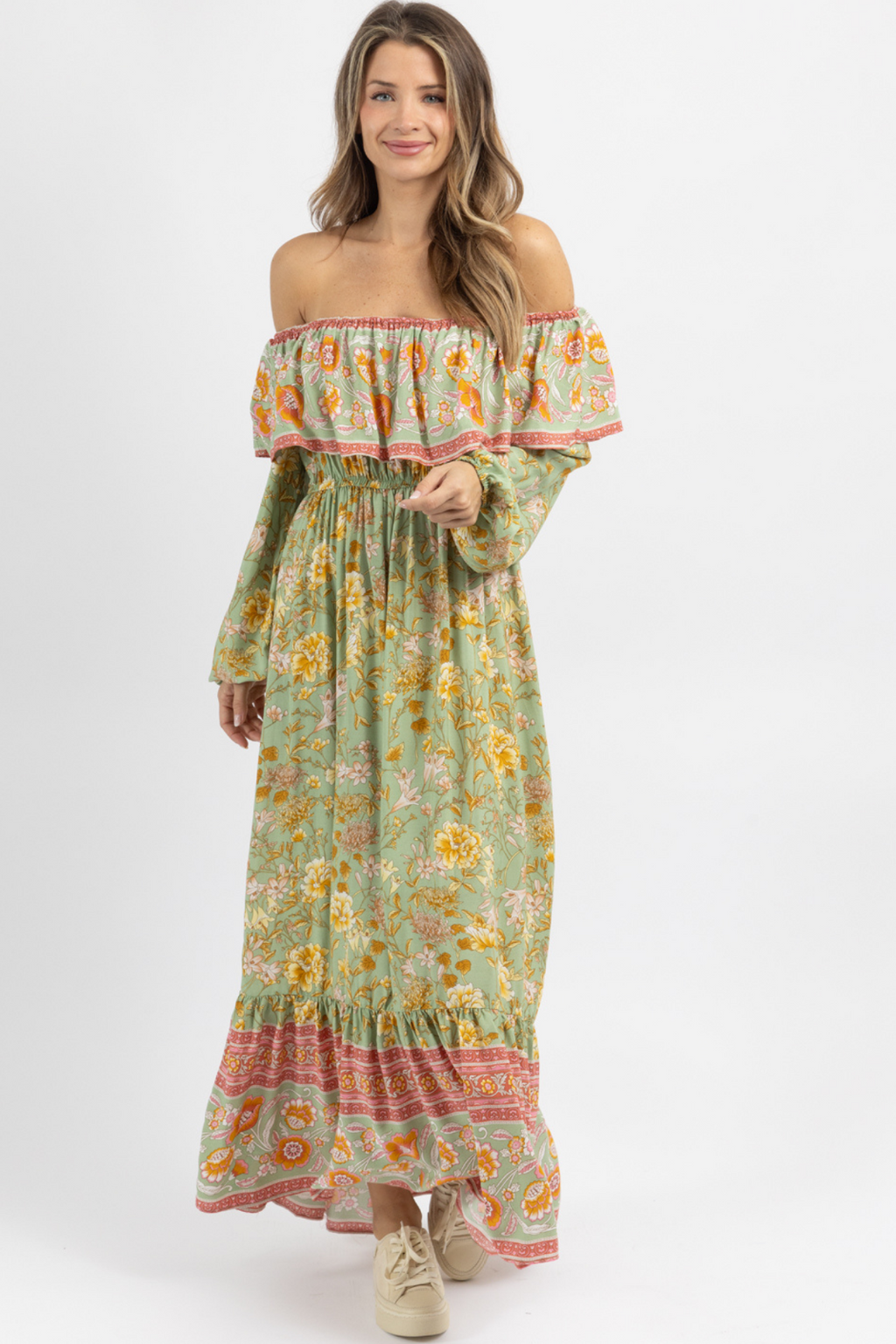 SOPHIE SAGE OFF SHOULDER MAXI DRESS