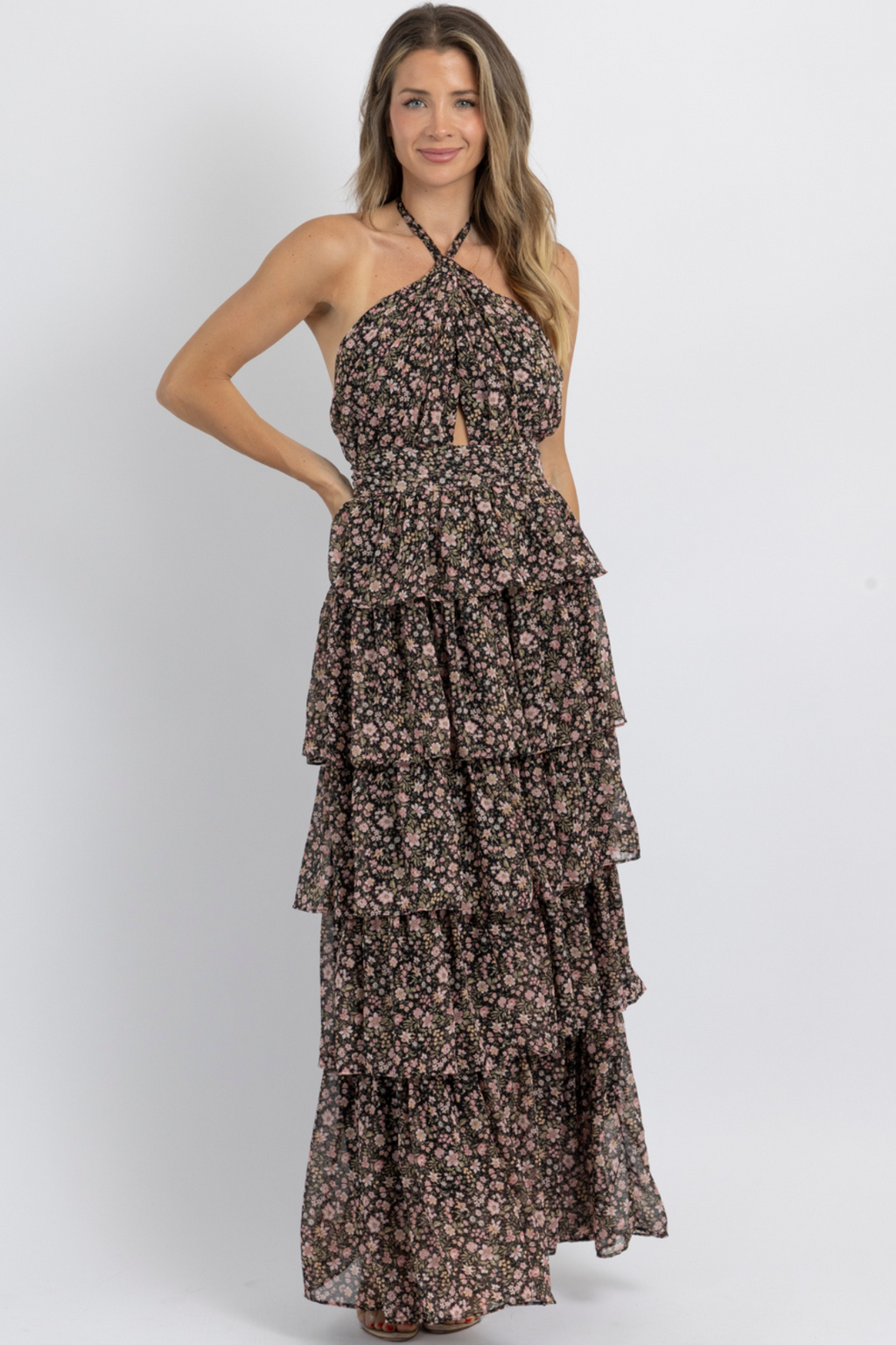 X'S + O'S SHIMMER TIERED MAXI DRESS