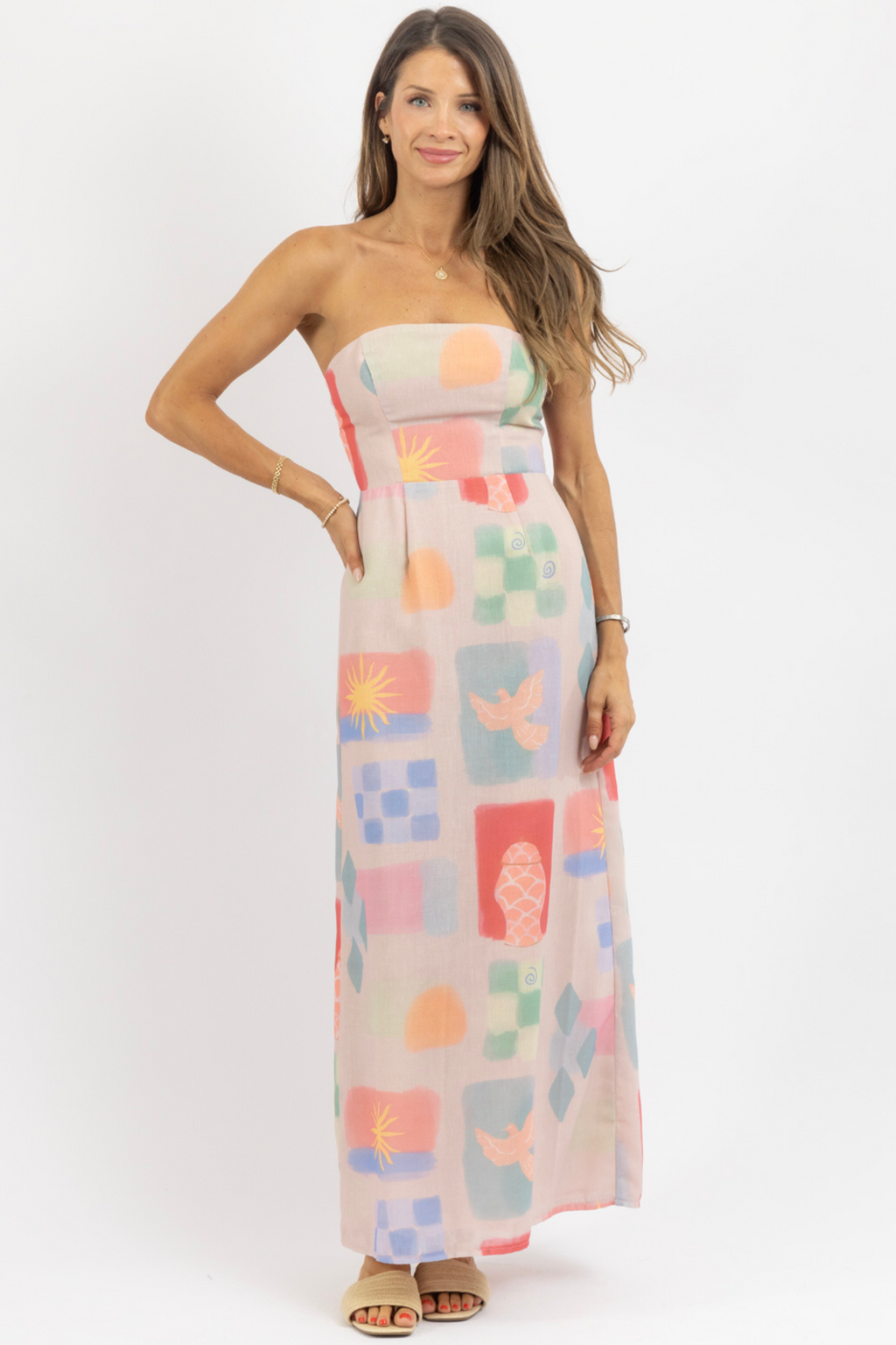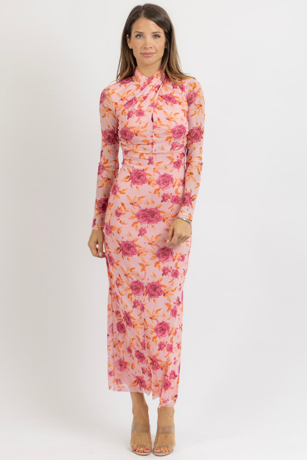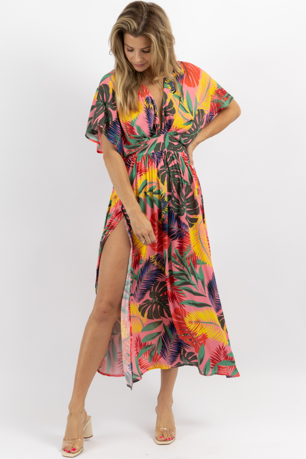 PINK TROPICS SIDE SLIT MAXI DRESS