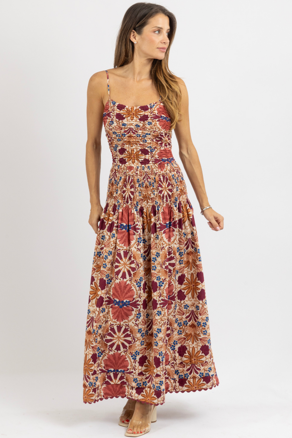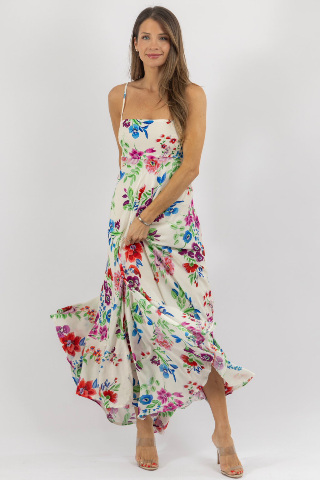 LAVENDER FLORAL TASSEL TIE MAXI DRESS