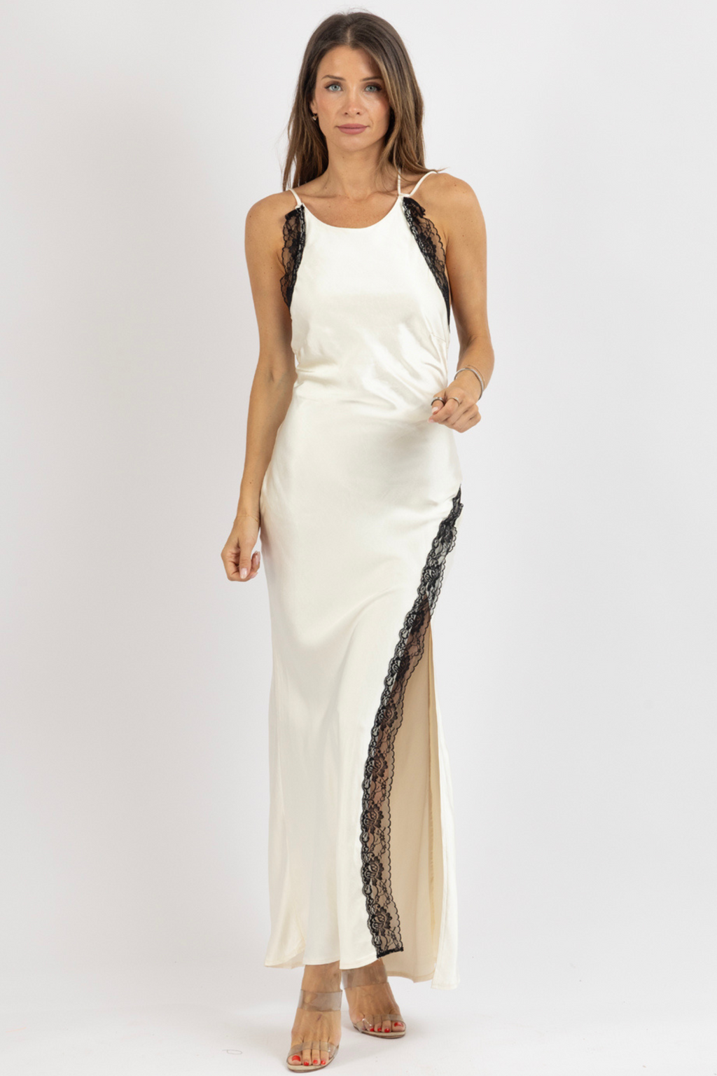 WHITE SLINKY CUTOUT LINED MAXI DRESS