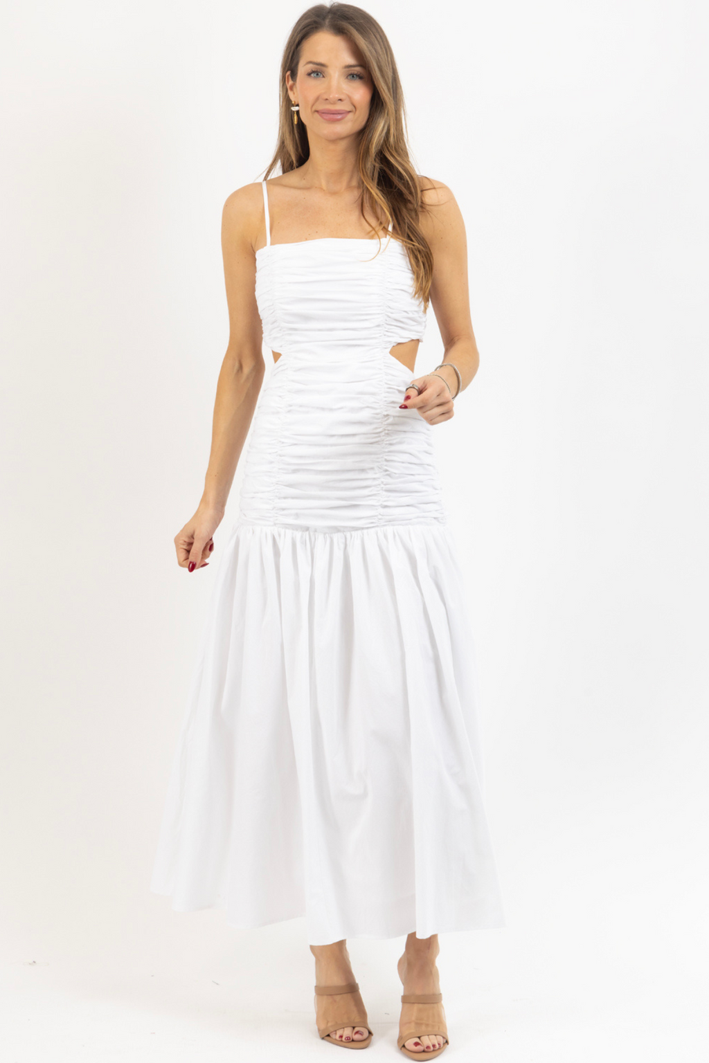 WHITE ASYMMETRIC CUTOUT MAXI DRESS
