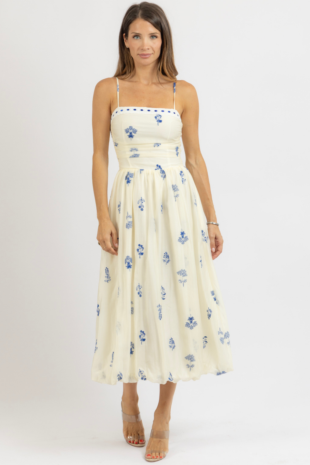 IVORY BUSTIER HALTER LINEN MIDI DRESS