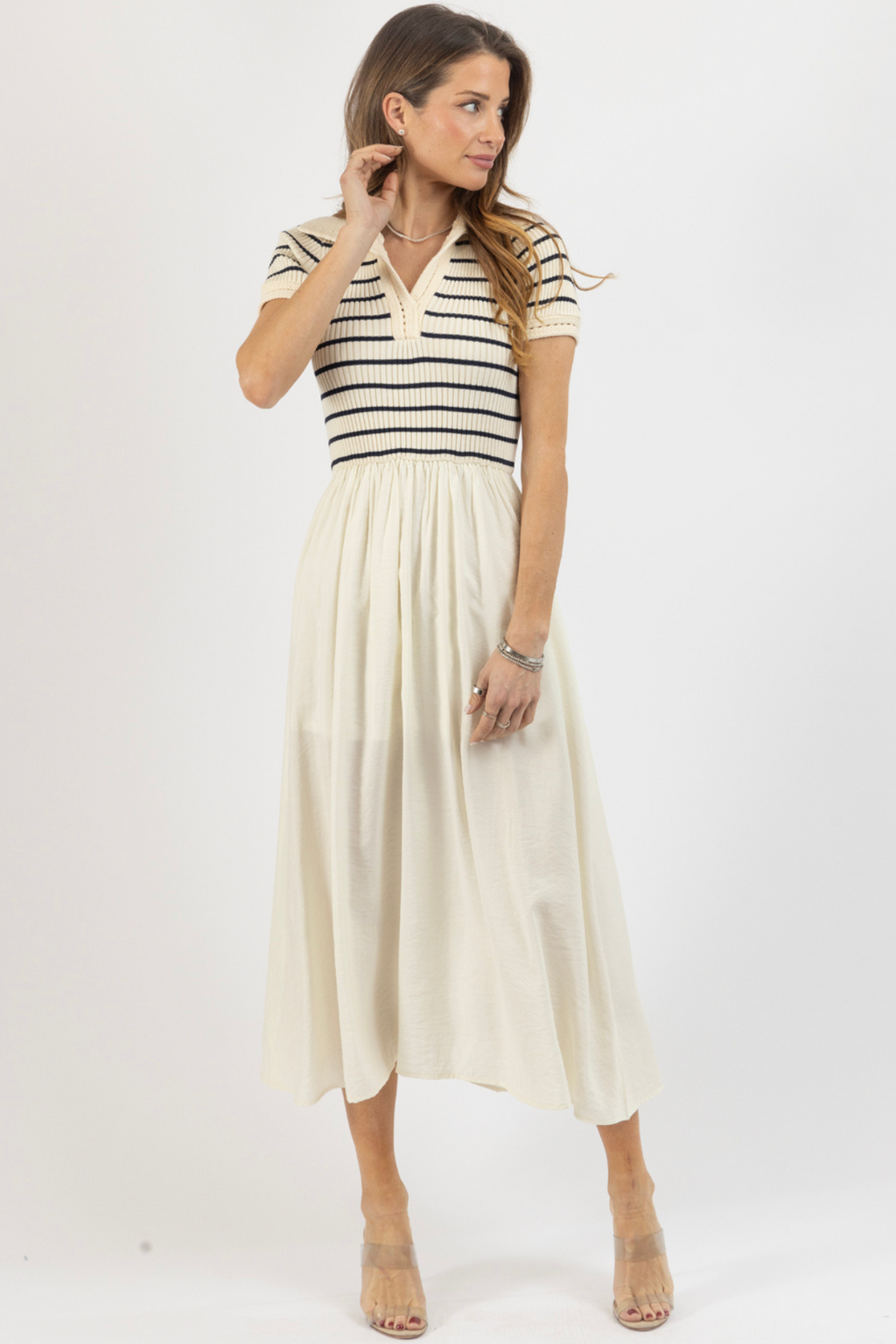 SHORT SLEEVE COLLARED MIDI DRESS IN IVORY