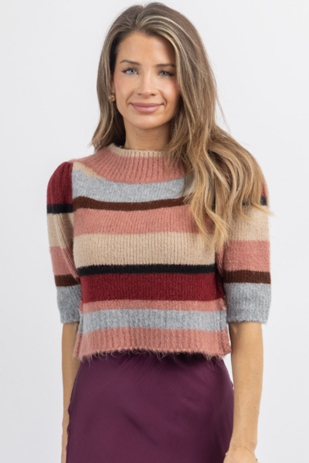 CRISSY MULTICOLOR MOCKNECK RIBBED TOP