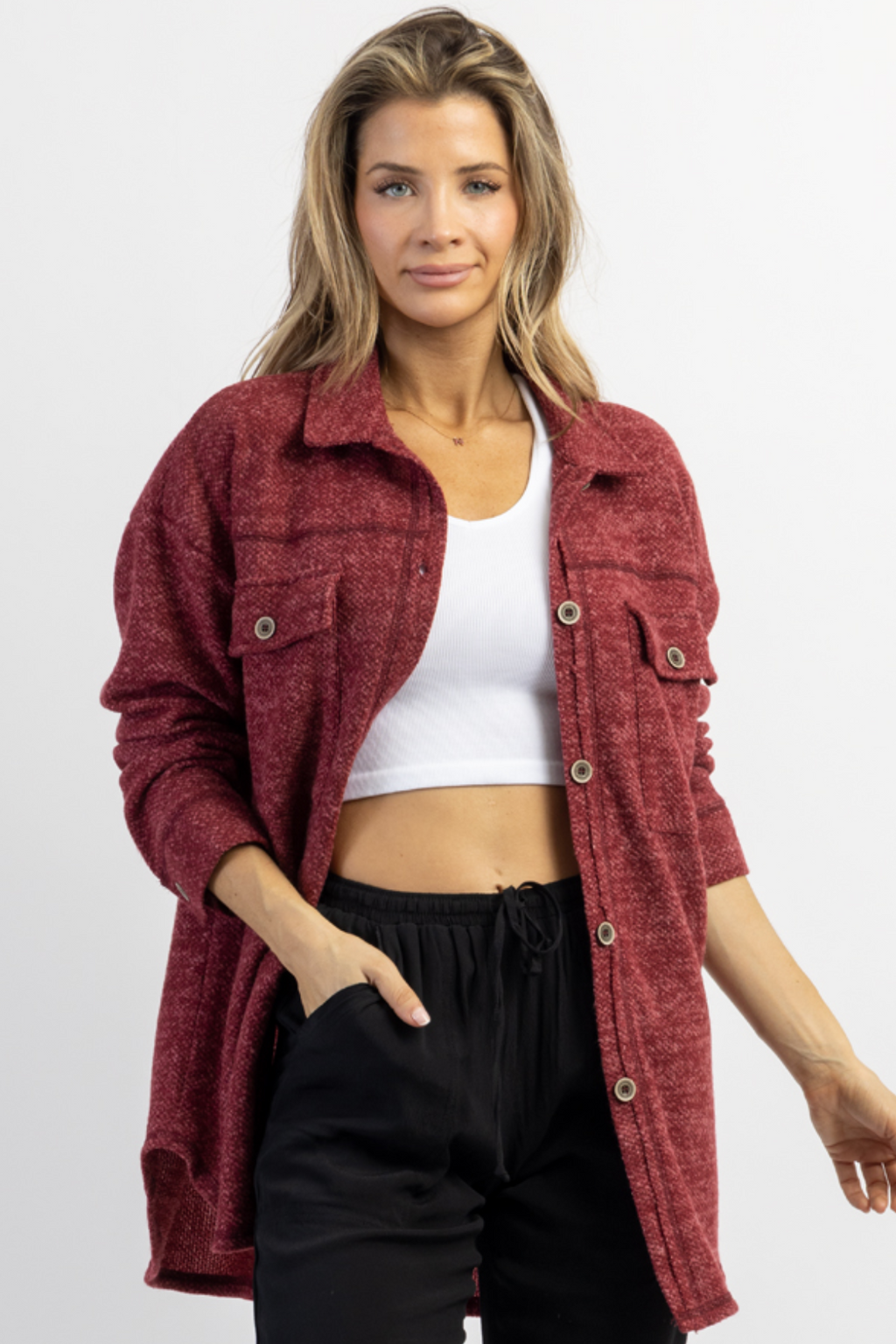 WOODSTOCK BURGUNDY RELAXED SHIRT JACKET