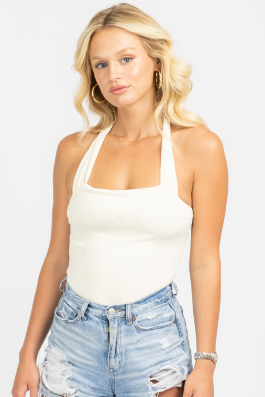 KNIT HALTERNECK BODYSUIT IN WHITE