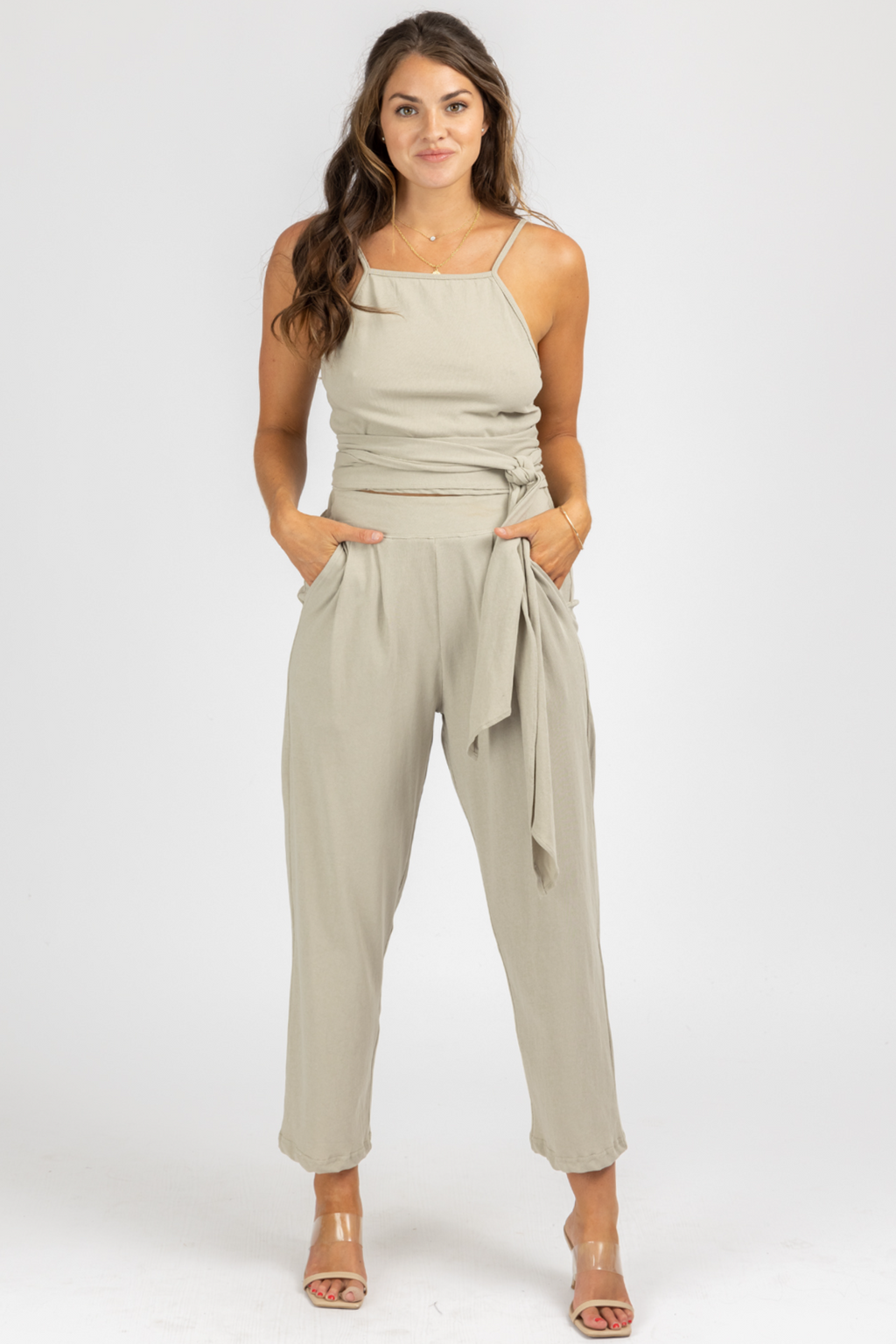 MUSHROOM WRAP TOP + PLEATED PANT SET