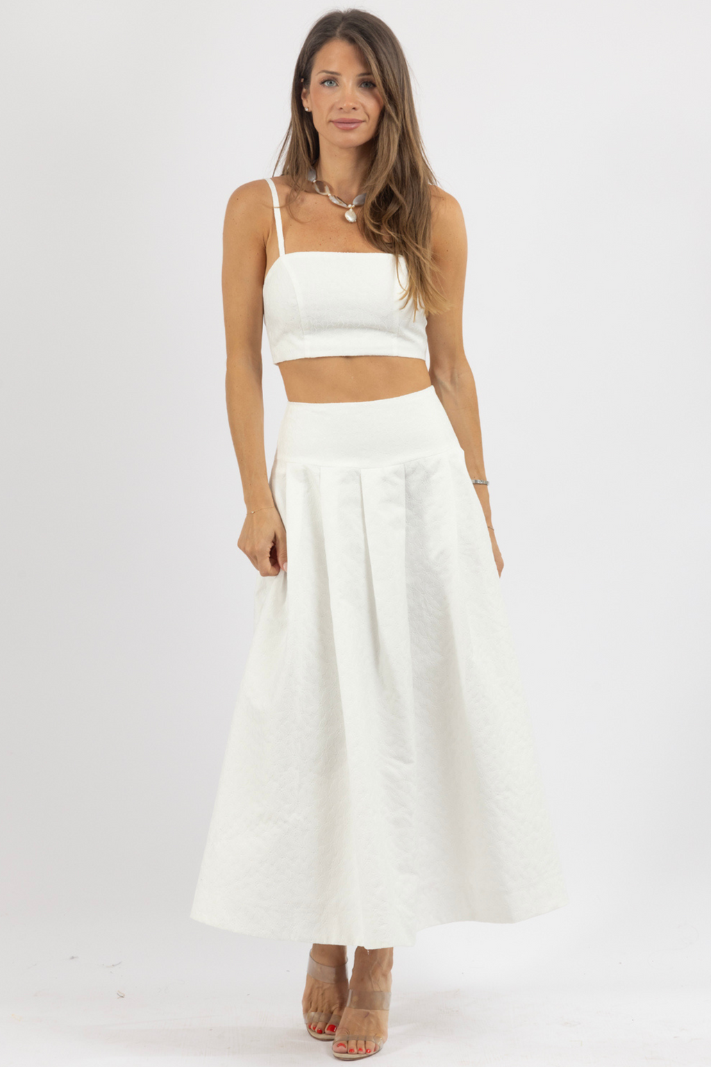 WHITE LINEN PINSTRIPE MIDI SKIRT SET