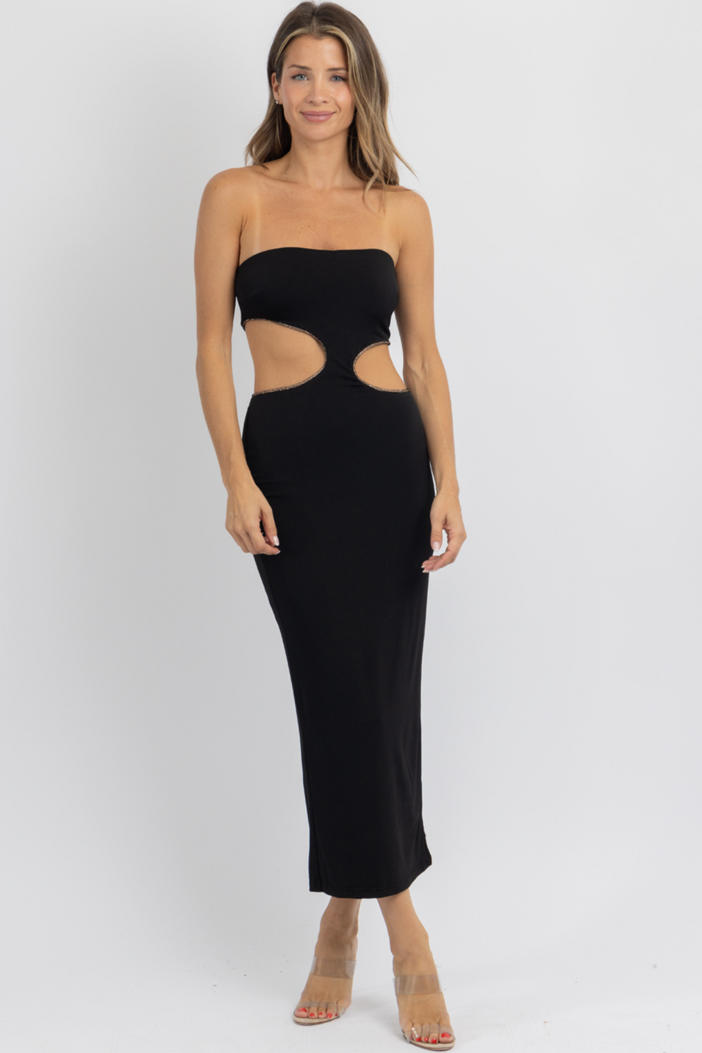 BLACK KNIT LAYERED BRA MIDI DRESS SET