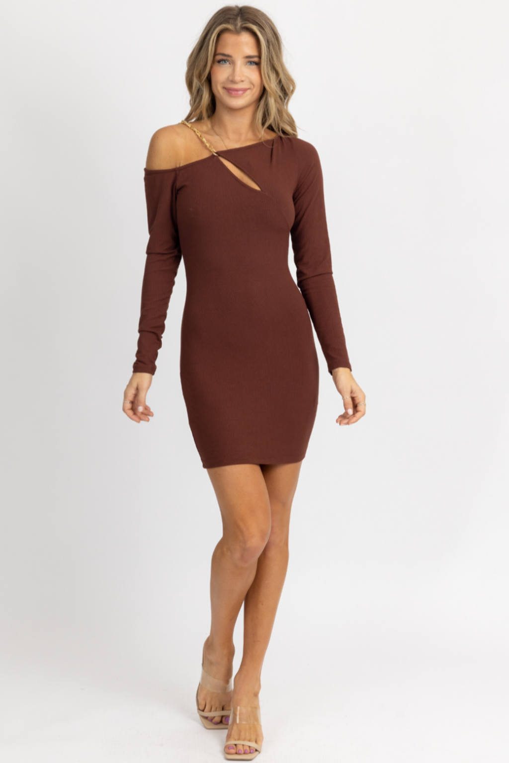 BROWNIE ASYMMETRICAL CHAIN TRIM MINI DRESS