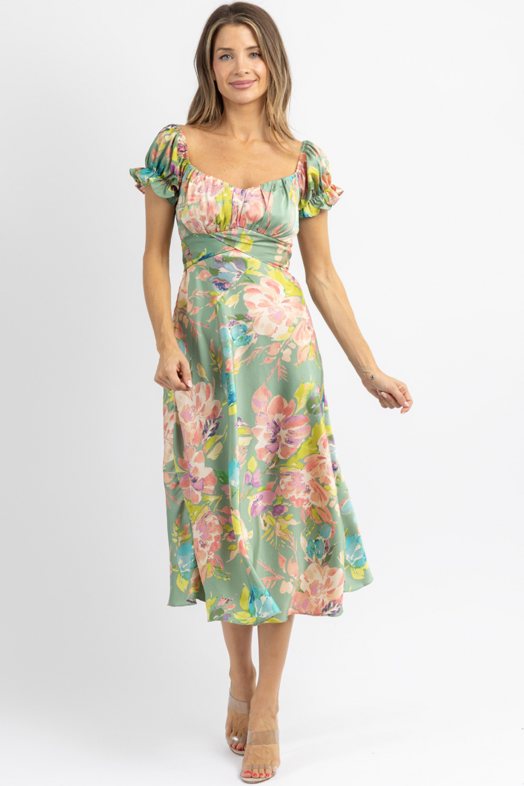 SUMMER JADE DRAPE + RUCHE MIDI DRESS
