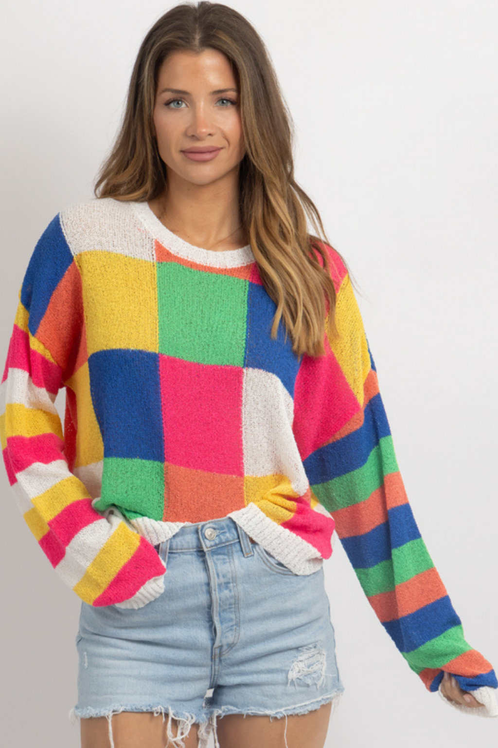 DANCE FLOOR MULTI-CHECK PULLOVER