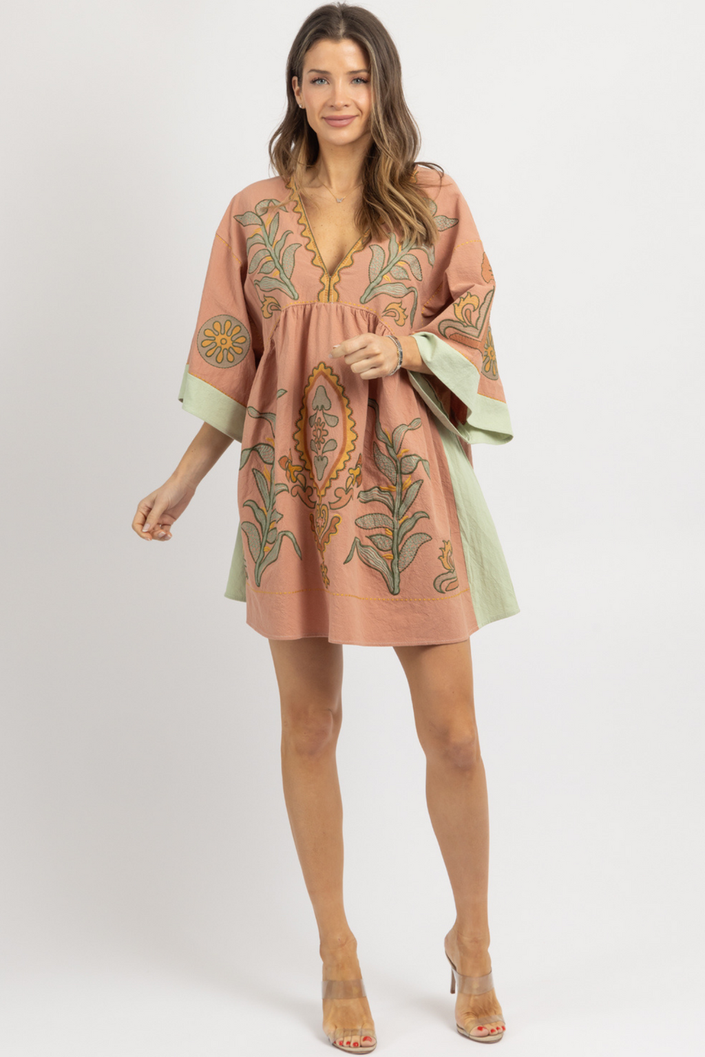 FAY GREEN EMBROIDERED MINI DRESS *BACK IN STOCK*