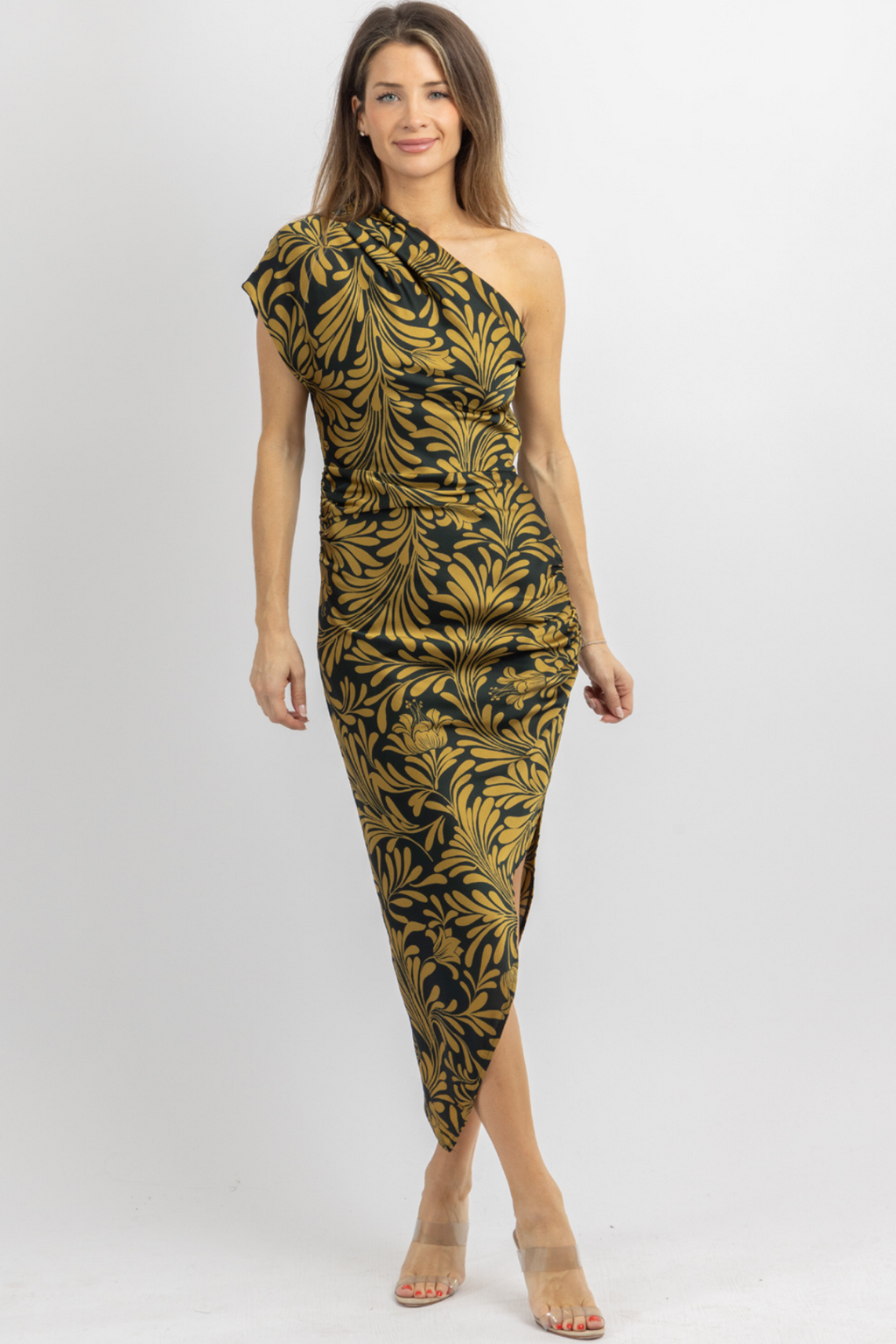 MARTINI HOUR ONE SHOULDER SATIN MIDI DRESS