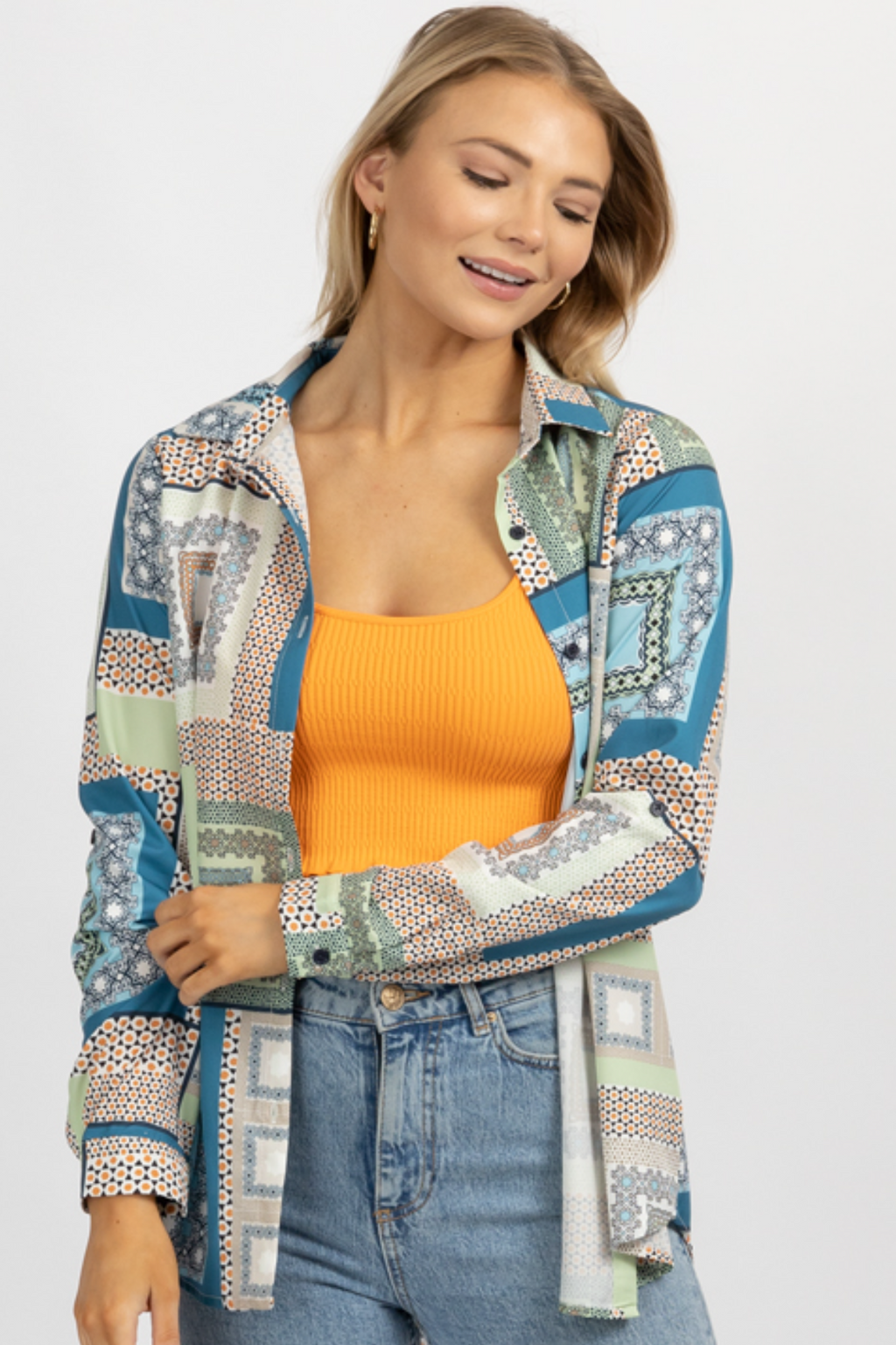 GREEN + STEEL BLUE PATTERN BUTTON DOWN