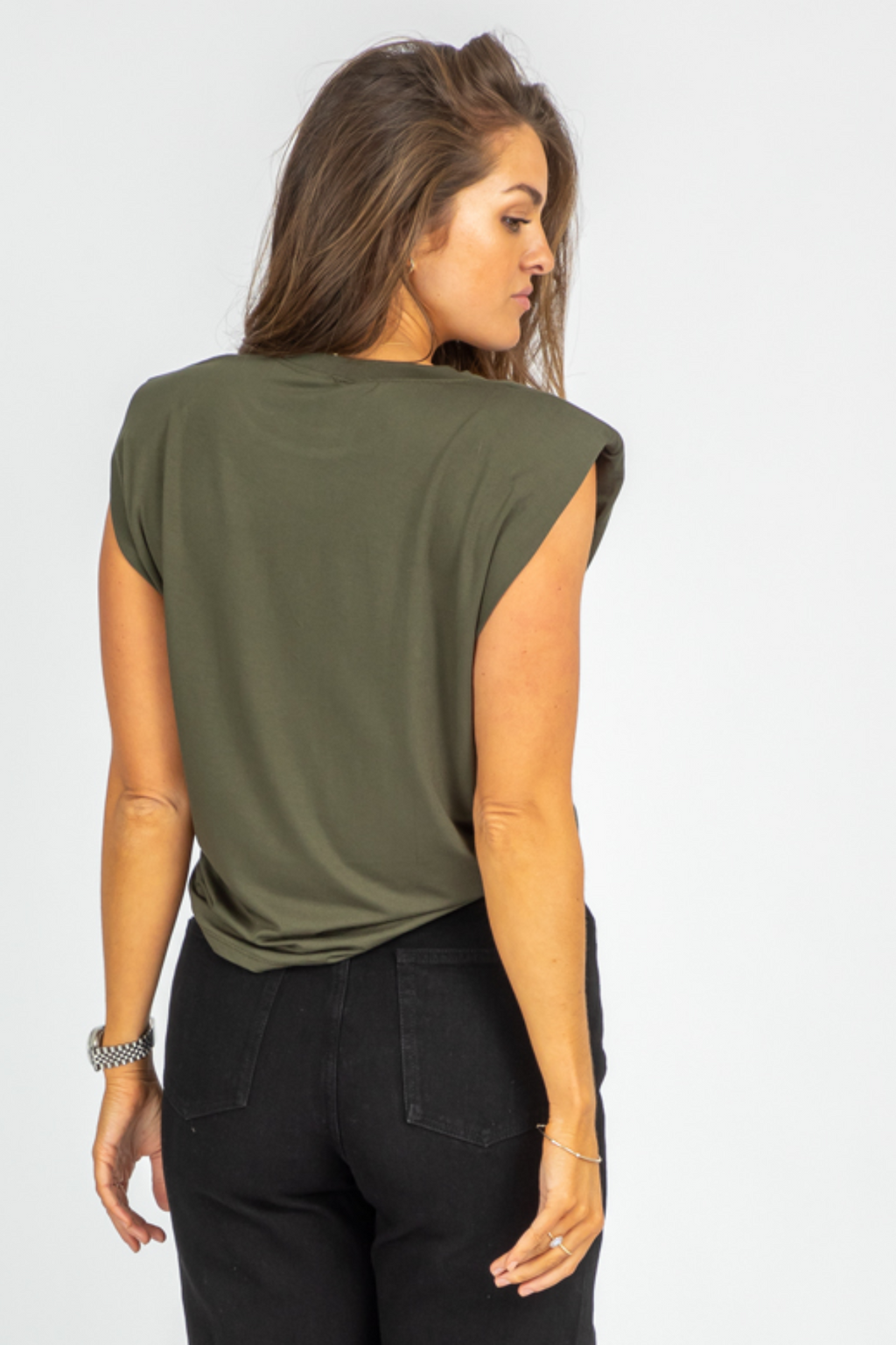 ARMY GREEN SLEEVELESS SHOULDER PAD TOP