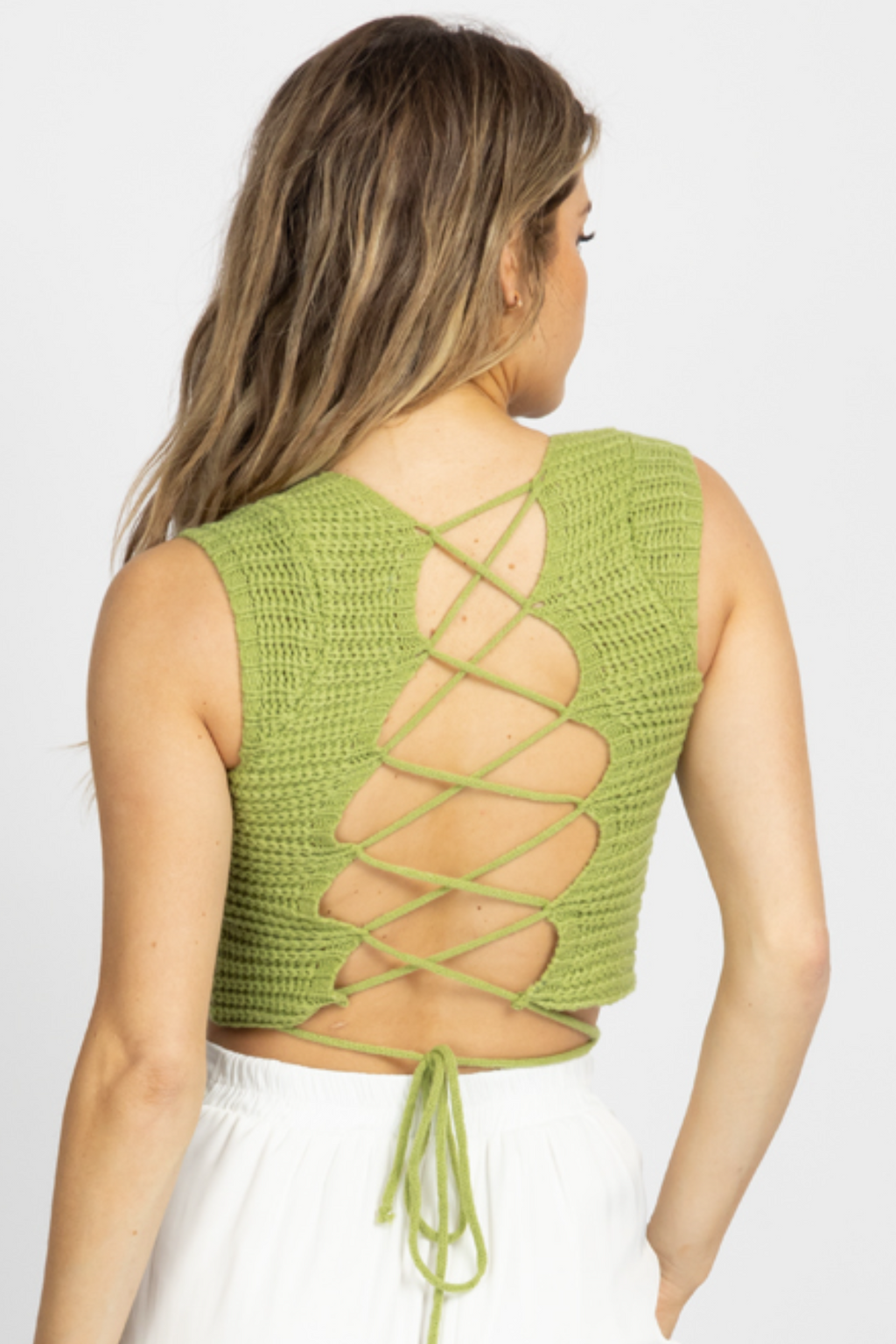 PISTACHIO KNIT CROSS-TIE BACK CROP TOP