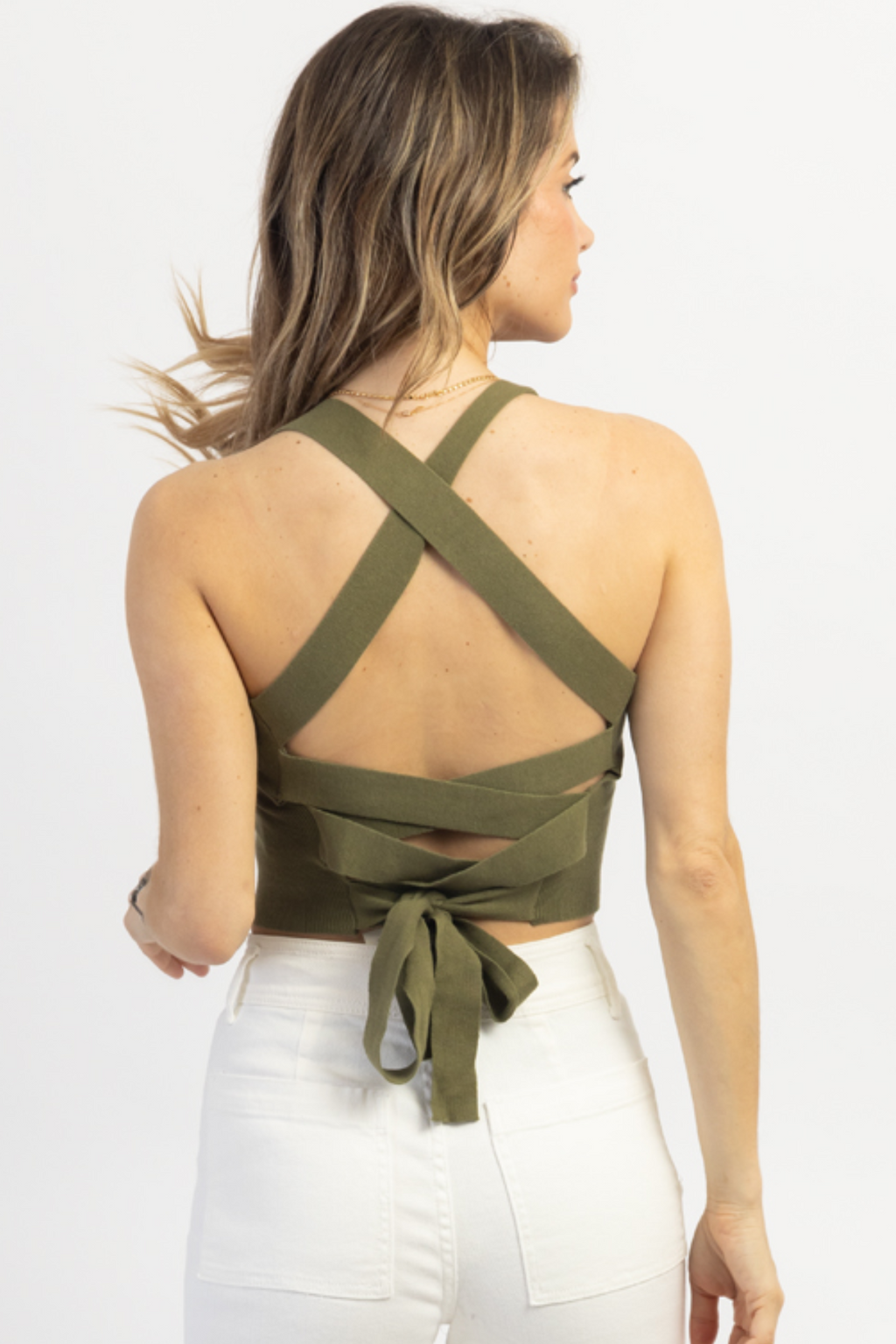 SAGE RIBBED HALTER OPEN-BACK BODYSUIT
