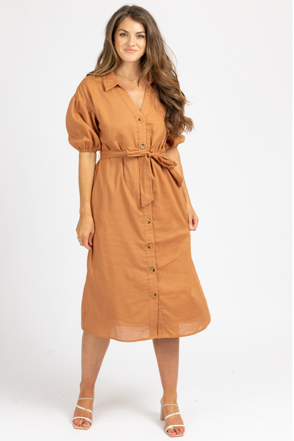 AUBURN COLLARED WAIST TIE MIDI DRESS