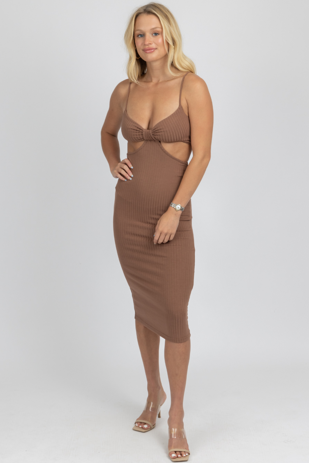 MOCHA CUTOUT RIBBED MIDI DRESS