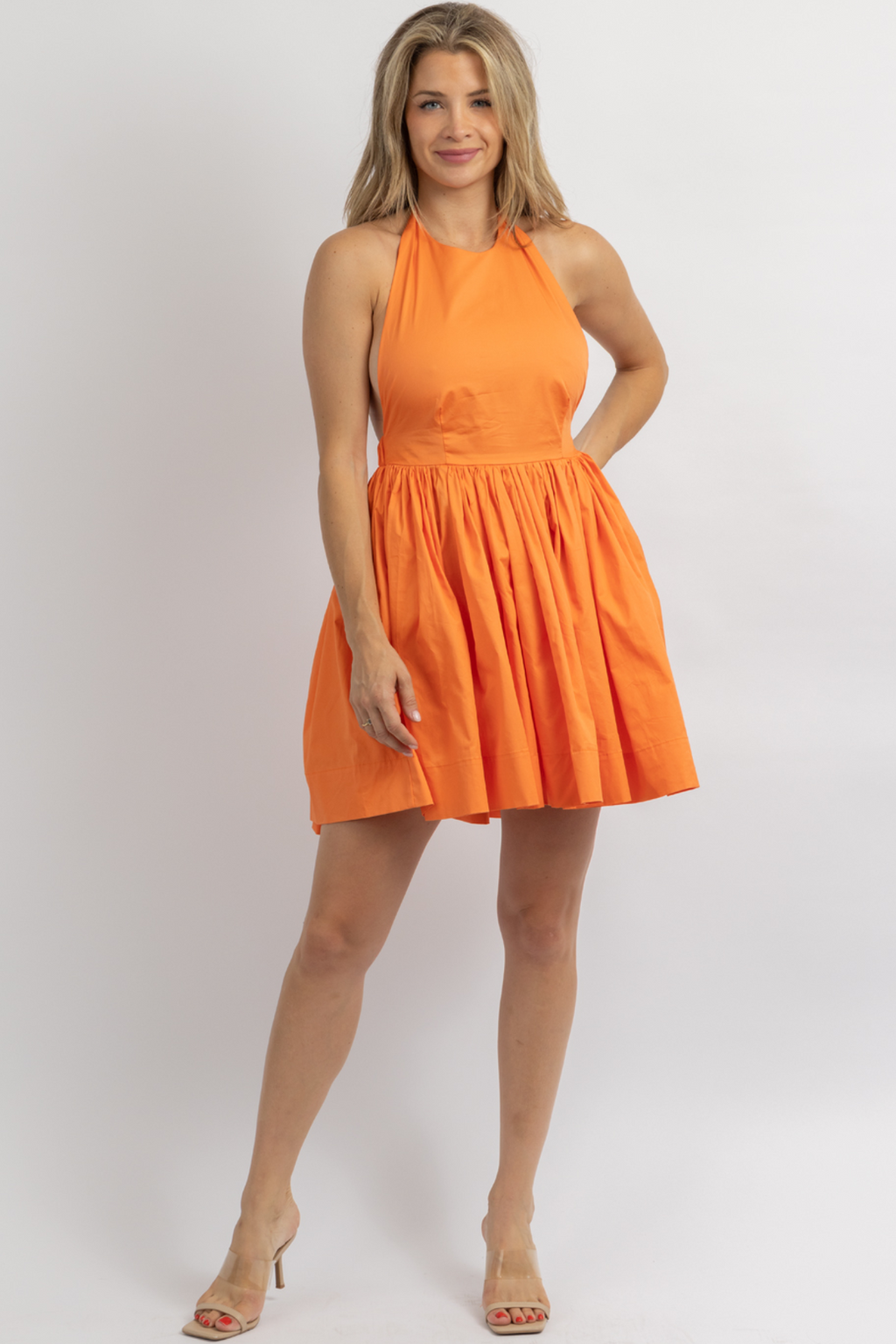 TANGERINE LINEN HALTERNECK MINI DRESS