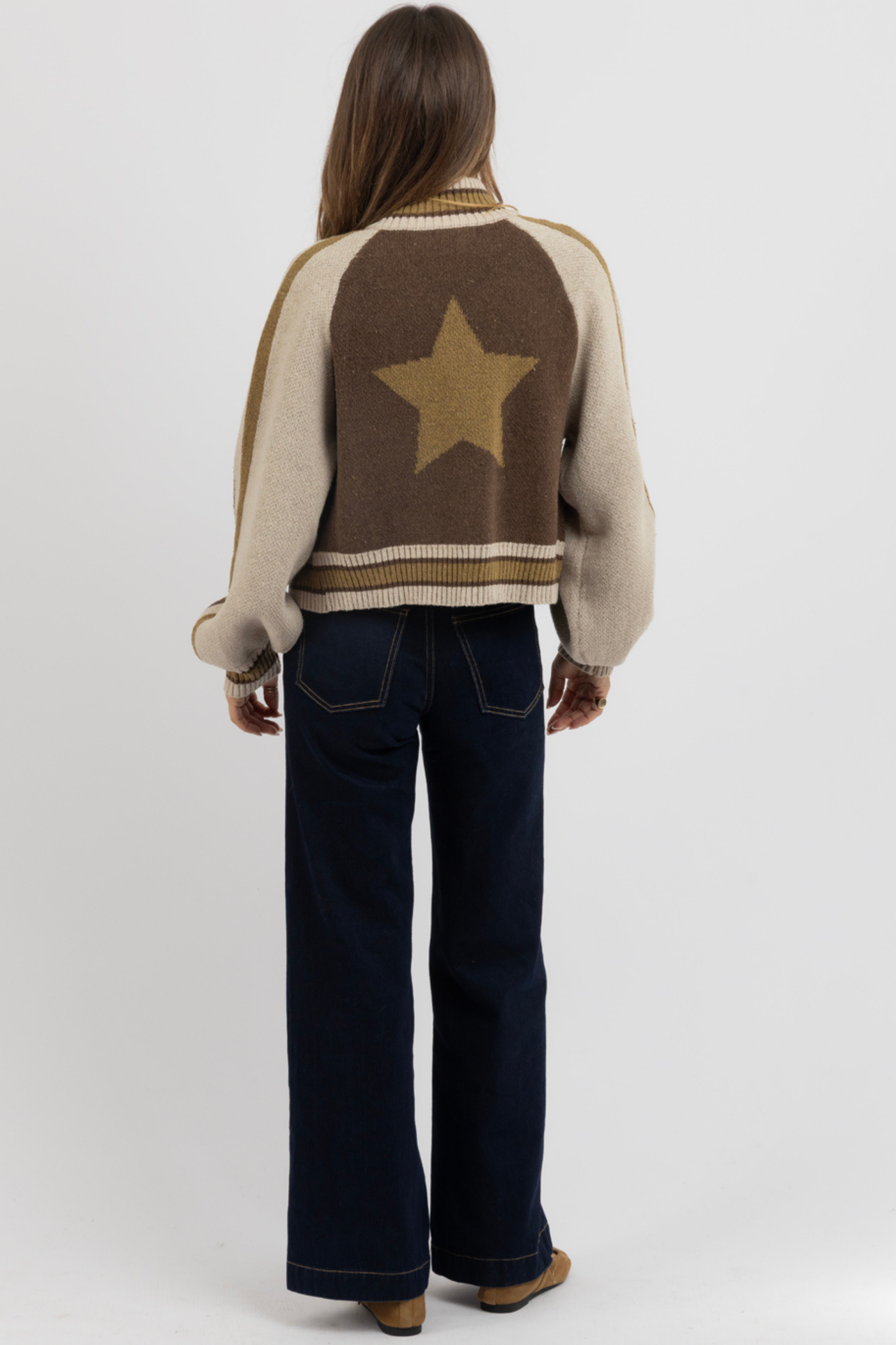 Relaxed fit, Mock neck, Long sleeves, Zippered front, Contrast sleeves