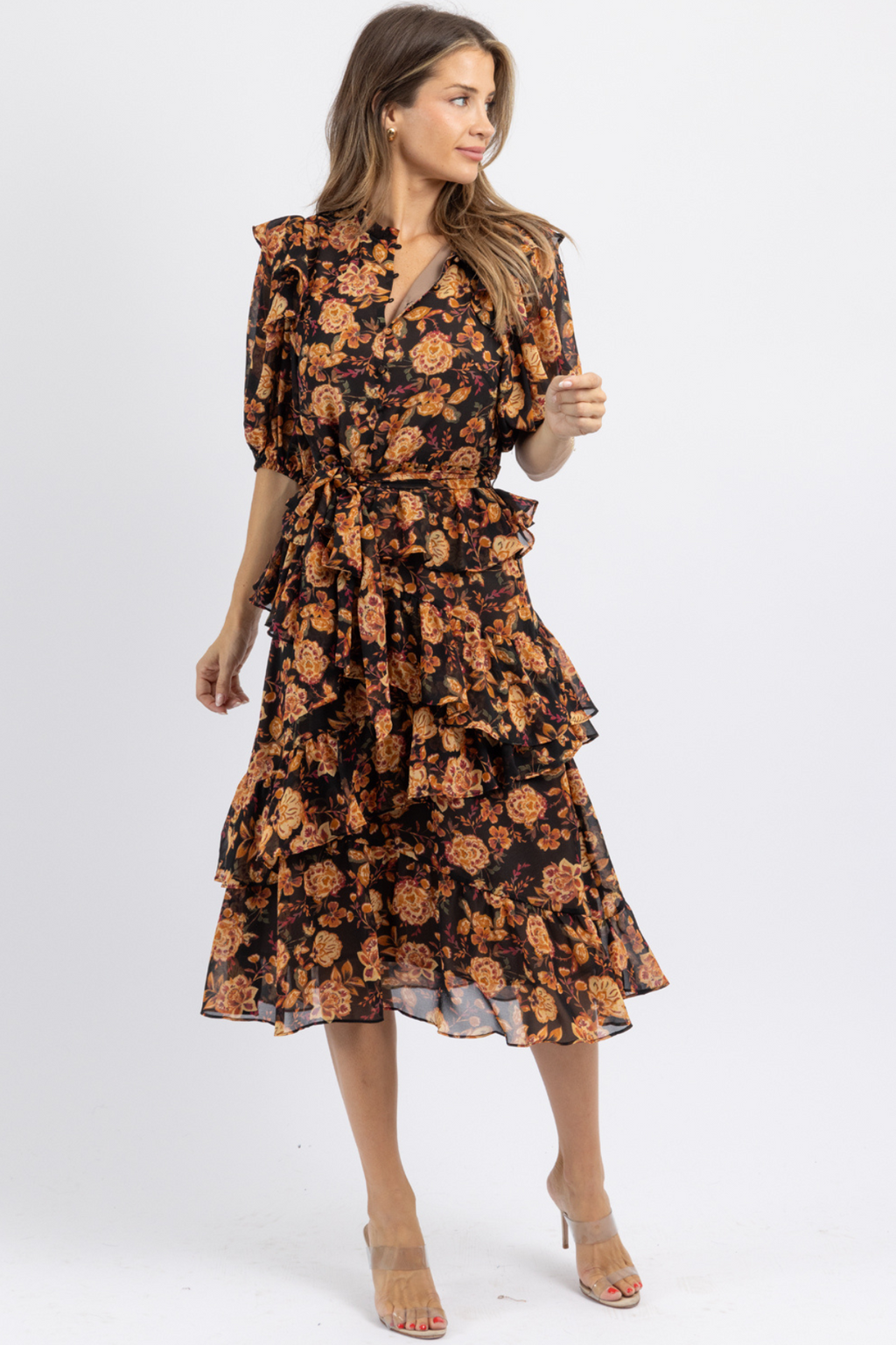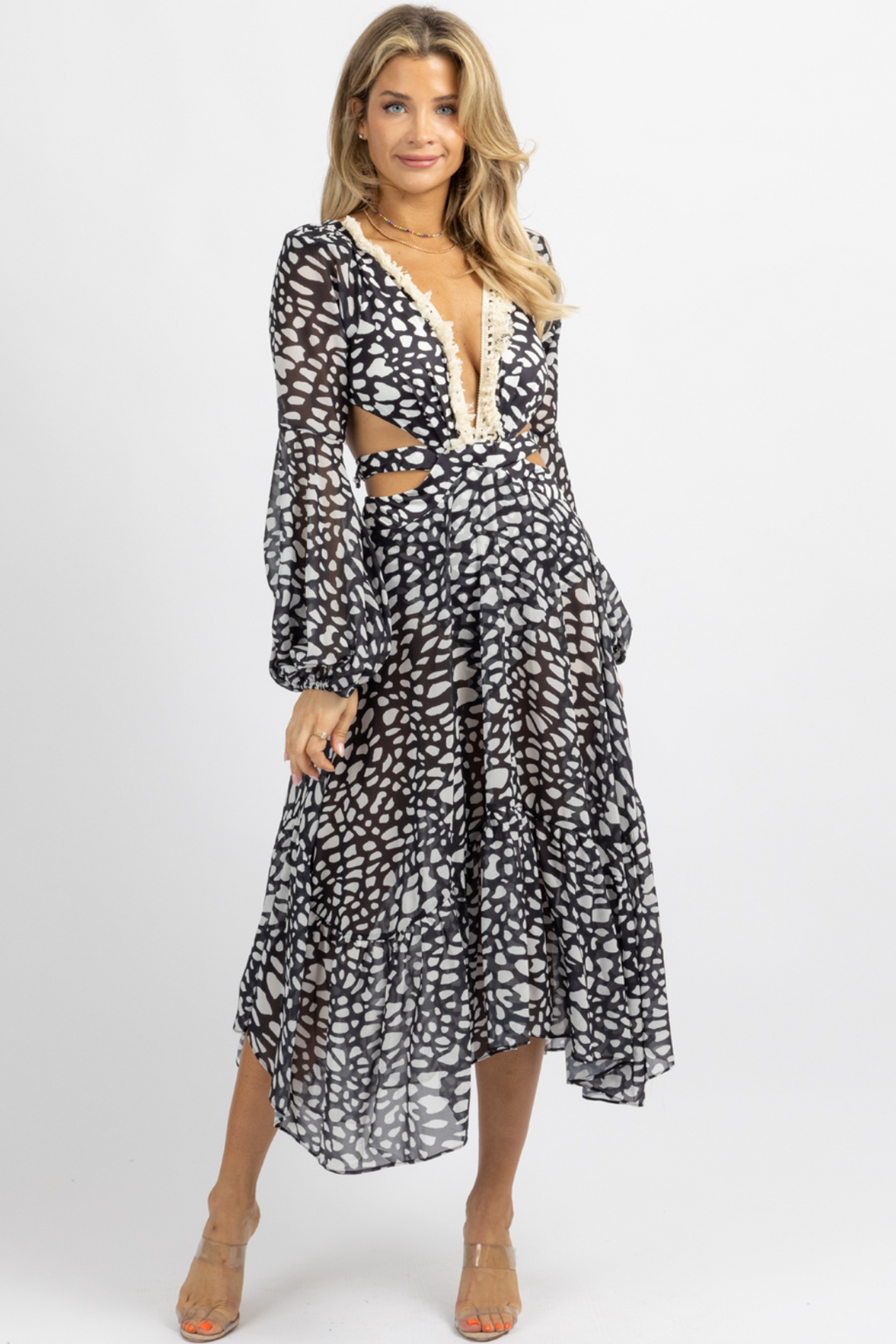 BLACK + IVORY SPOTTED FRINGE MAXI DRESS *BACK IN STOCK*