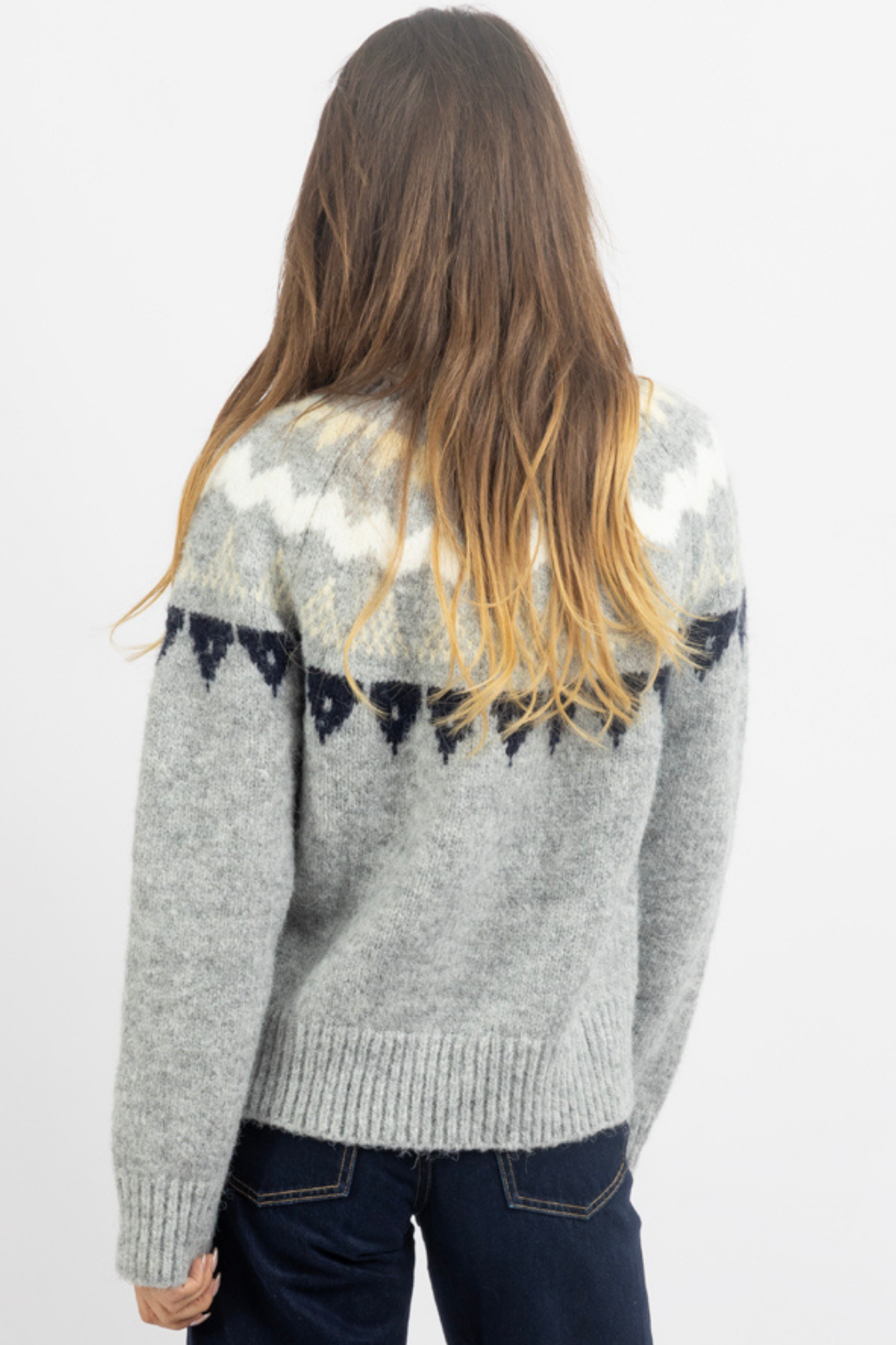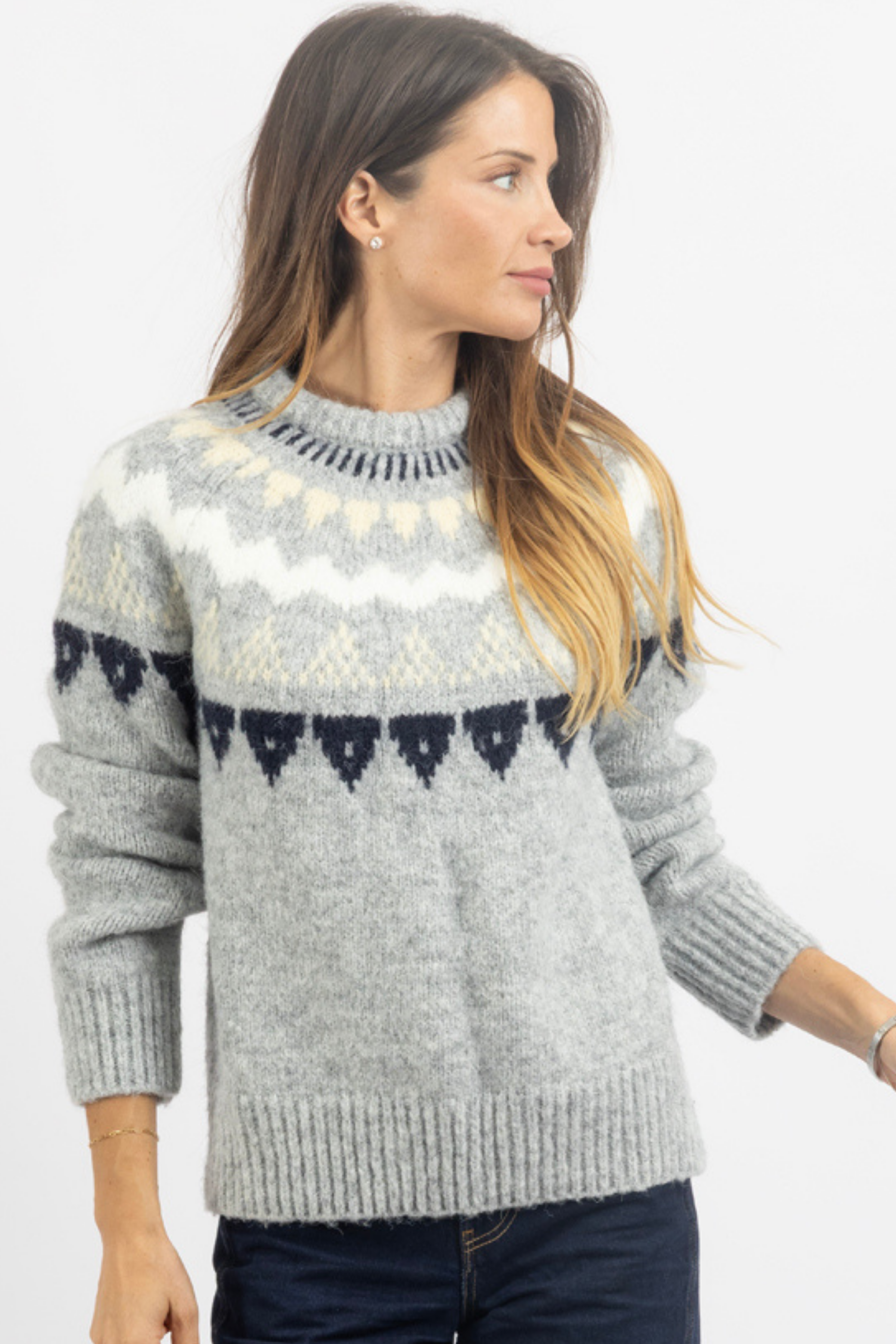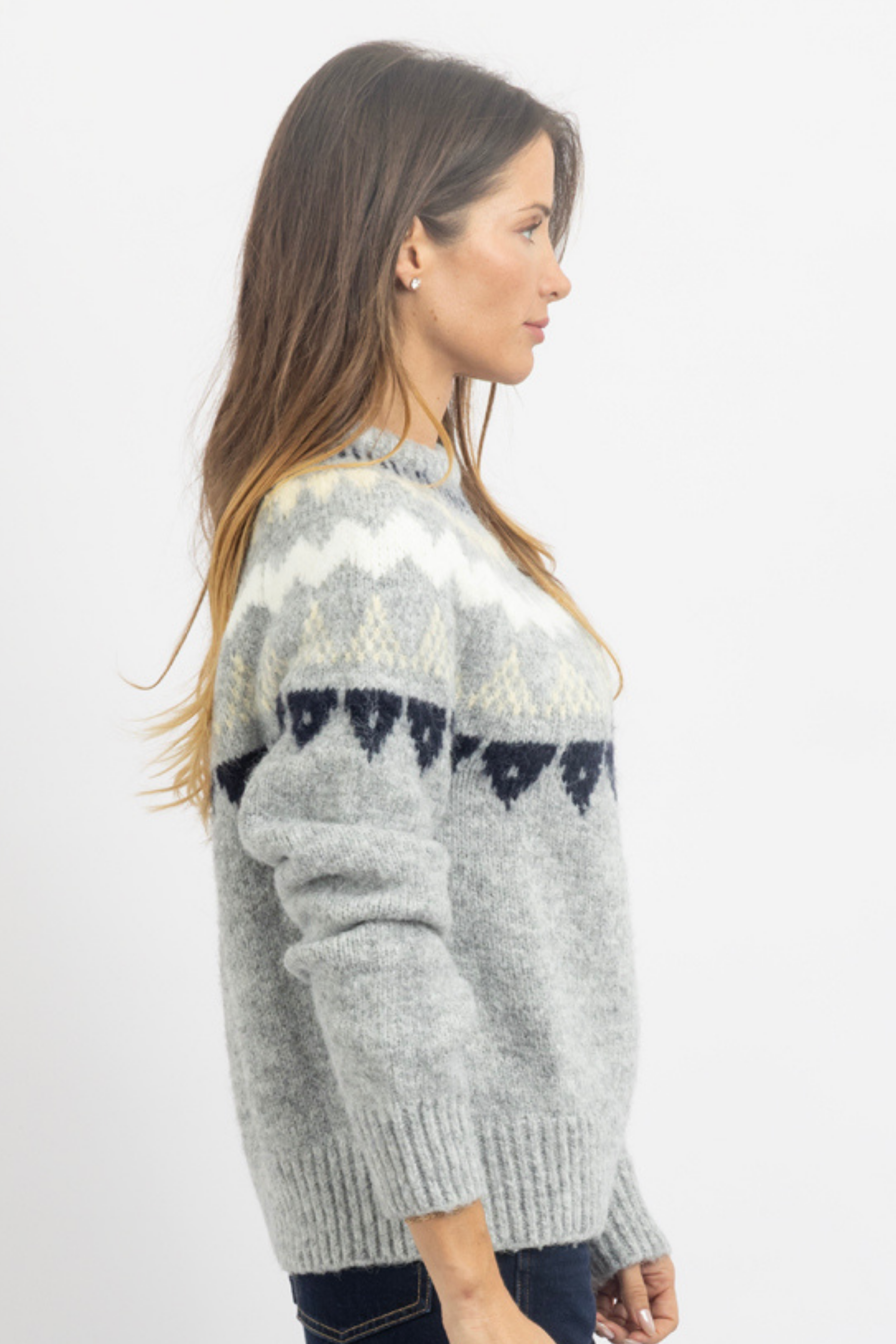 Round neck sweater, Ribbed hem, Long sleeves, Abstract print at neckline, Relaxed fit