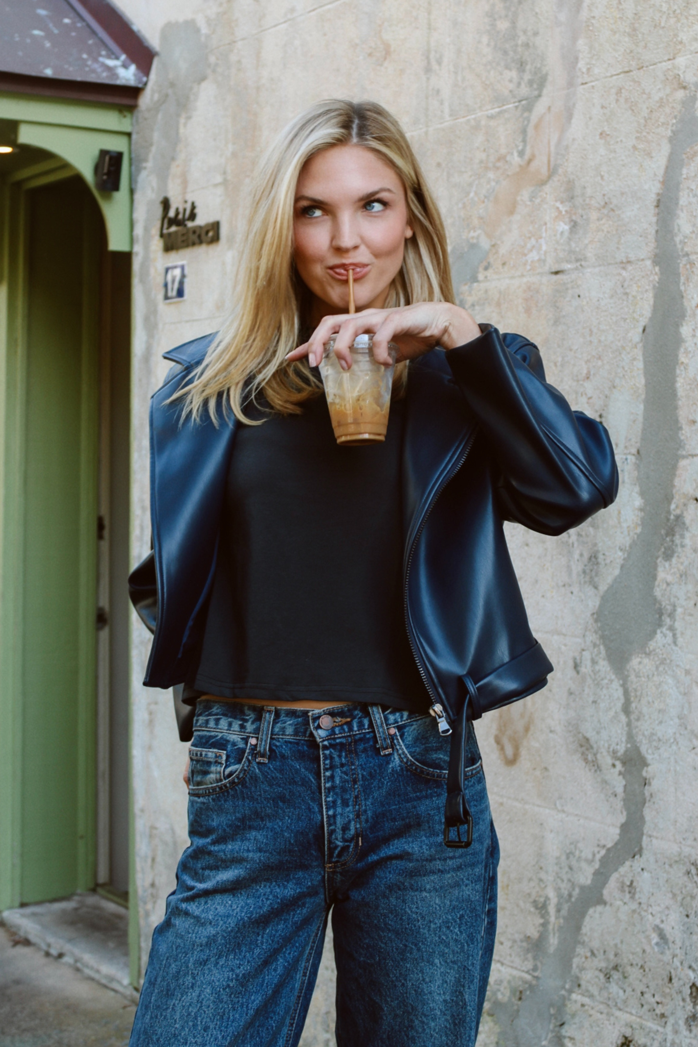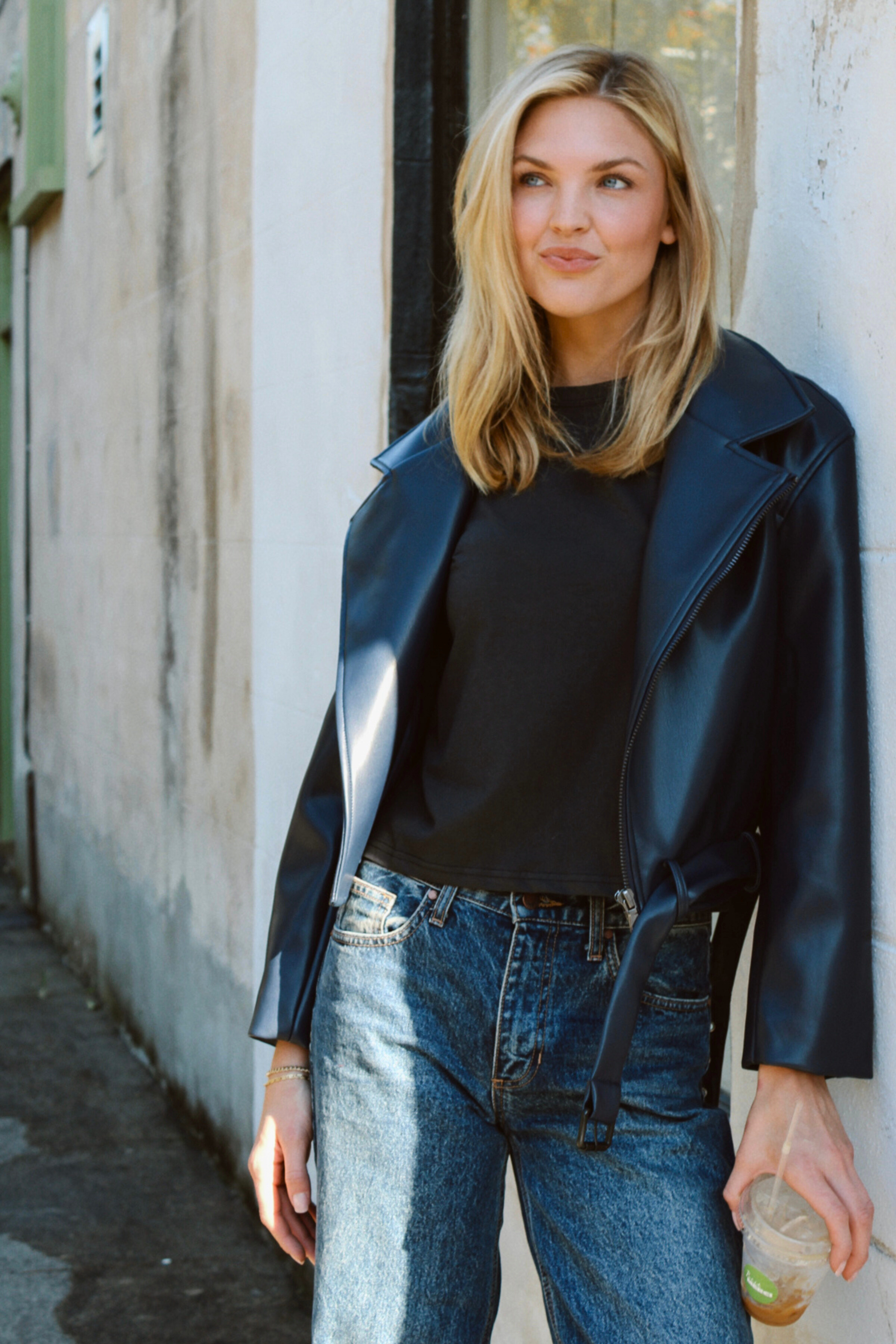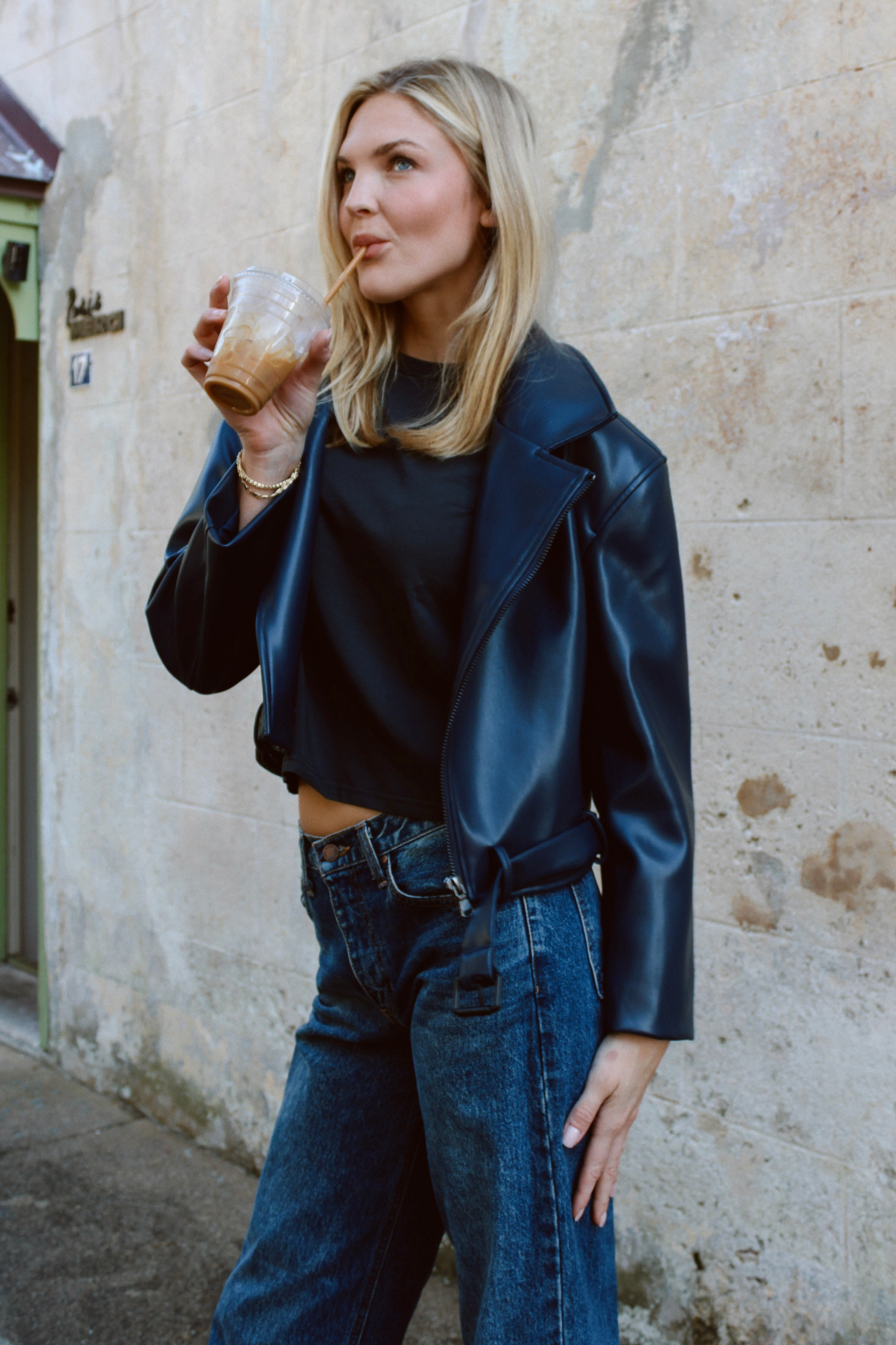 Vegan leather jacket, Cropped, Lined, Zippered, Collared