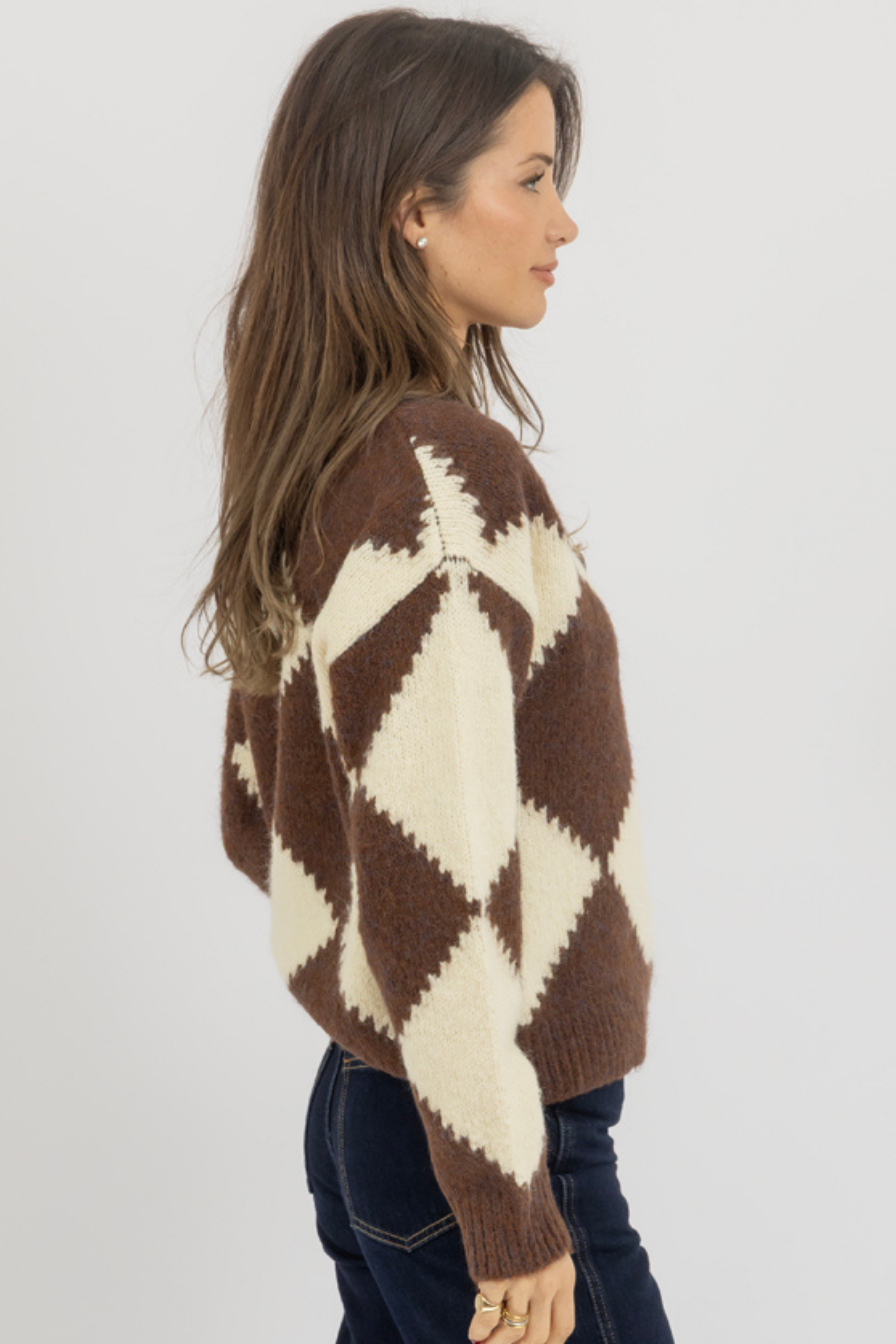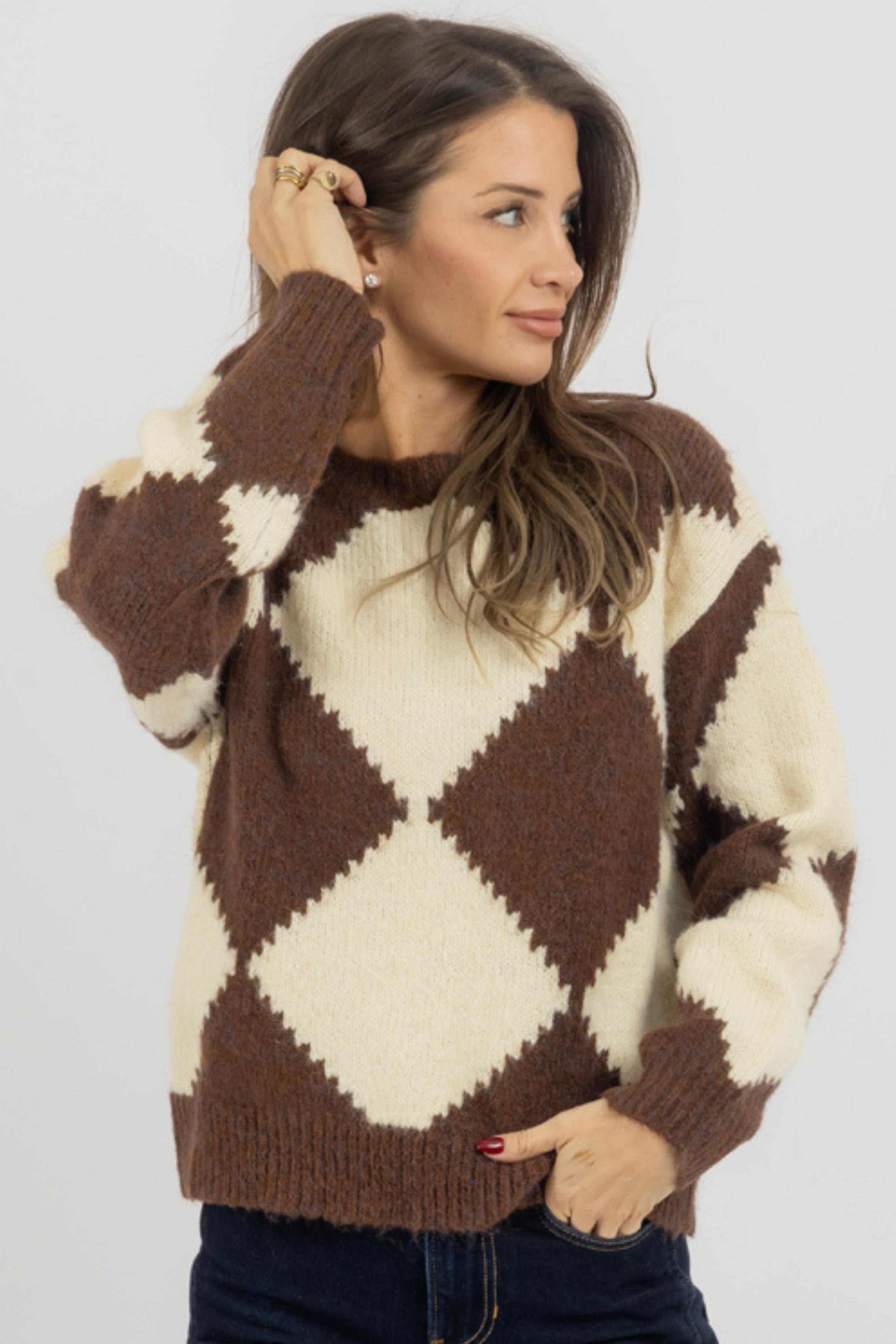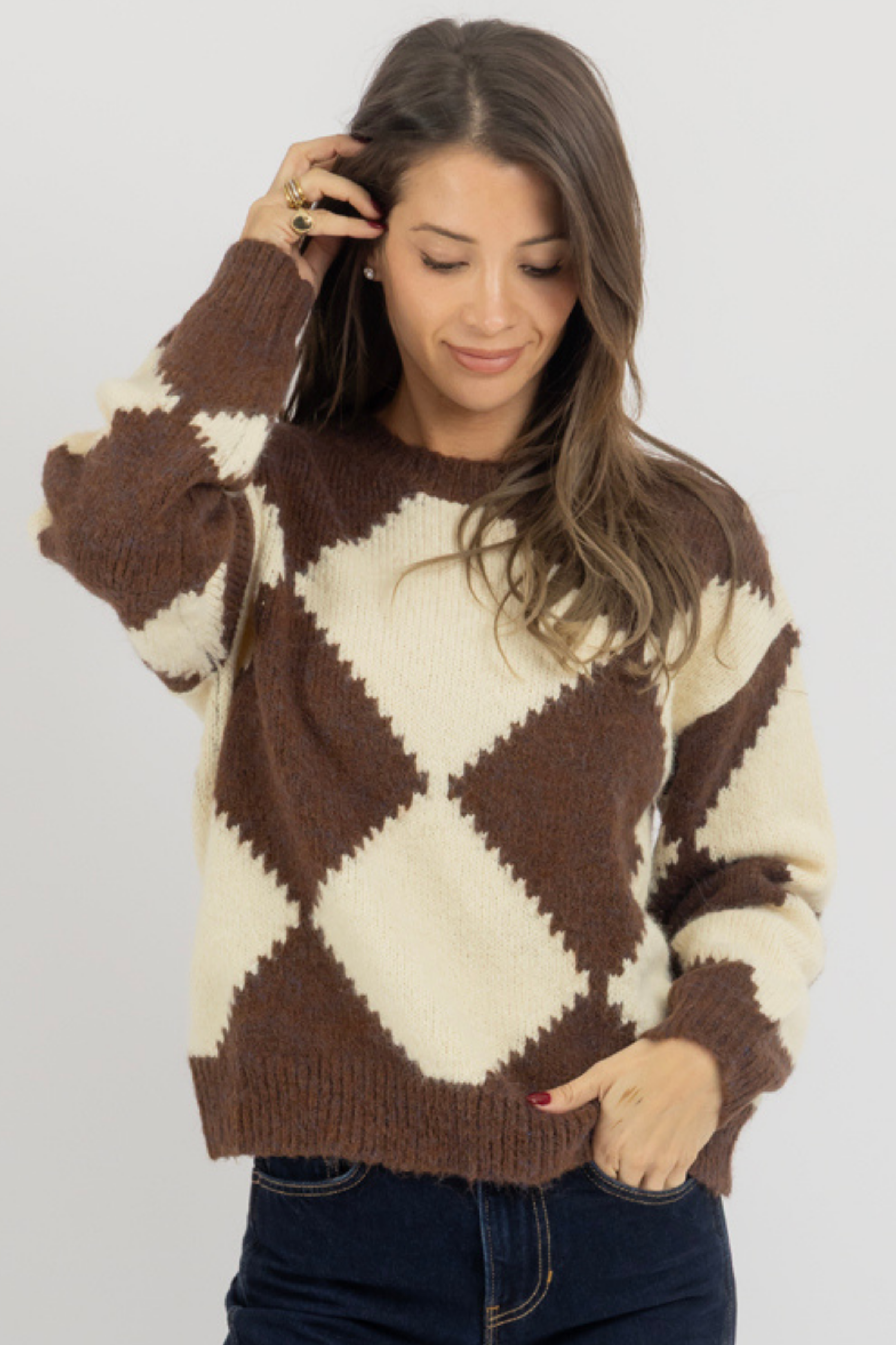 Relaxed fit, Long sleeves, Argyle print, Ribbed hem, Ribbed cuffs