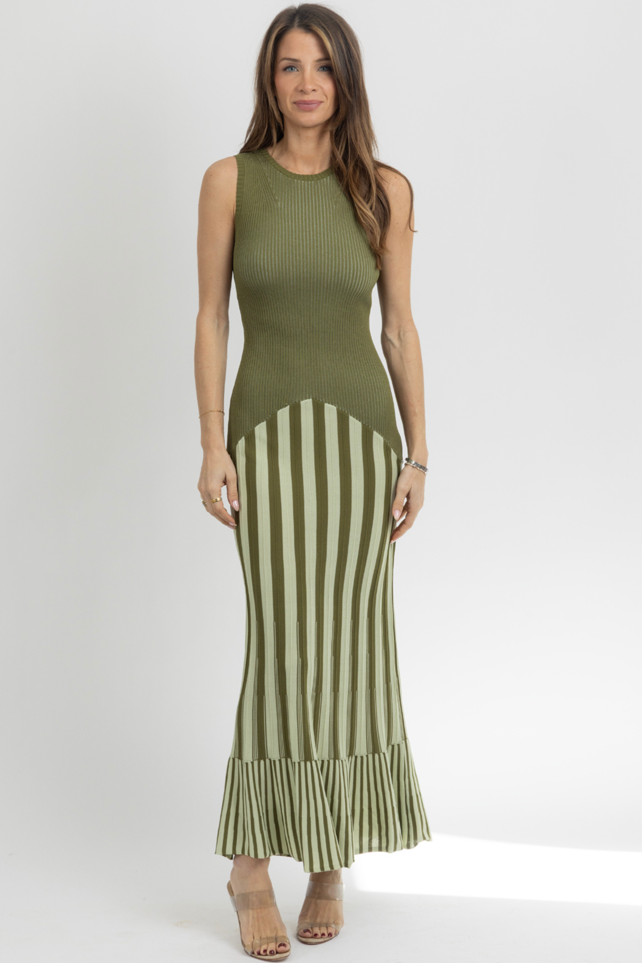 Sleeveless, Contrast green tones, Fitted with stretch, Knit, Maxi length