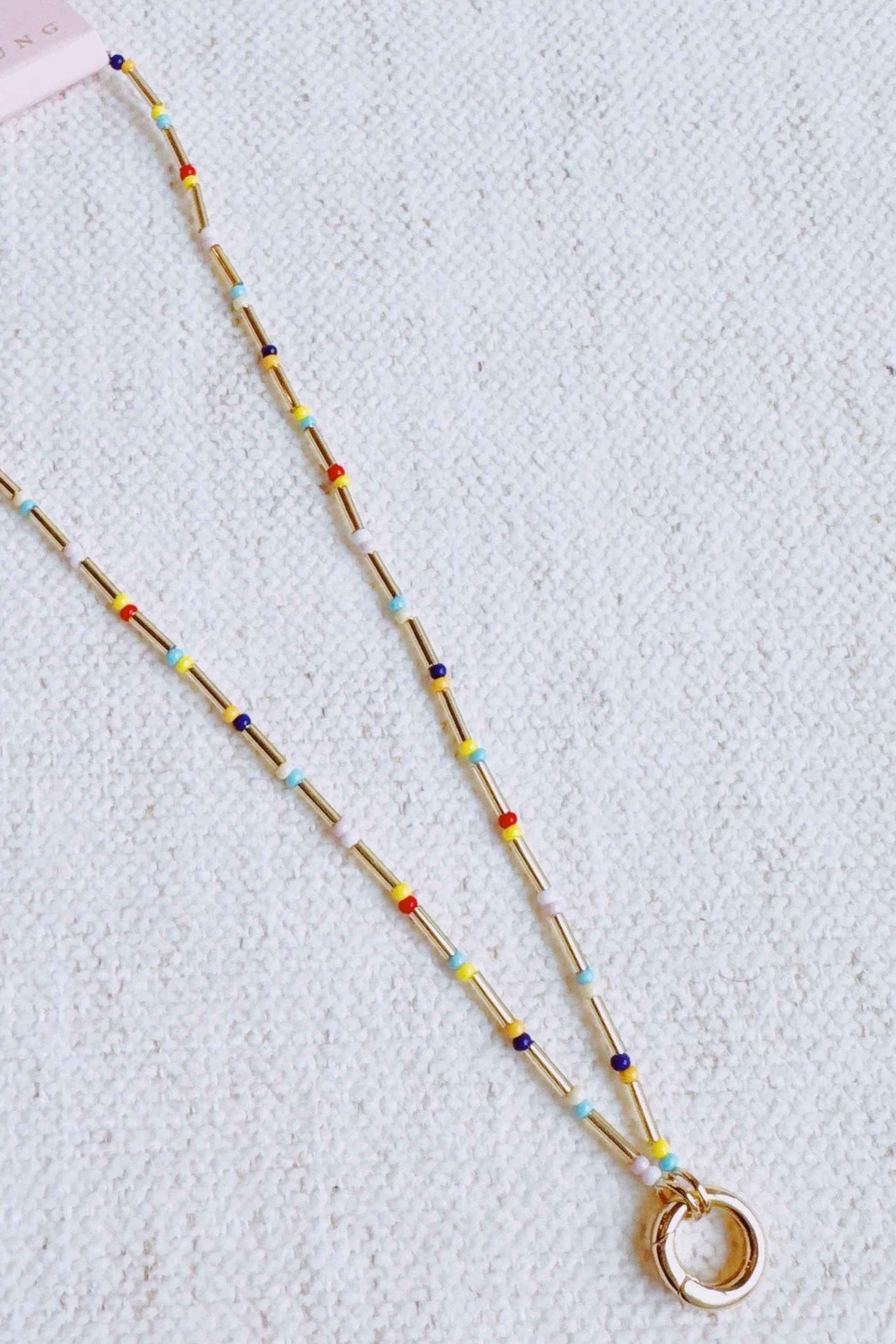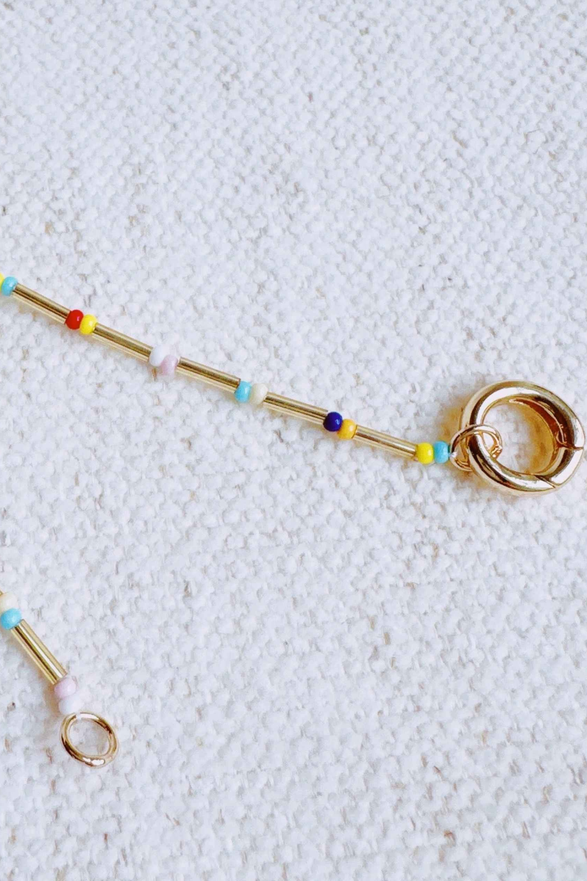 18K Non-tarnish gold, Multicolor beads throughout, Front lock + hoop detail
