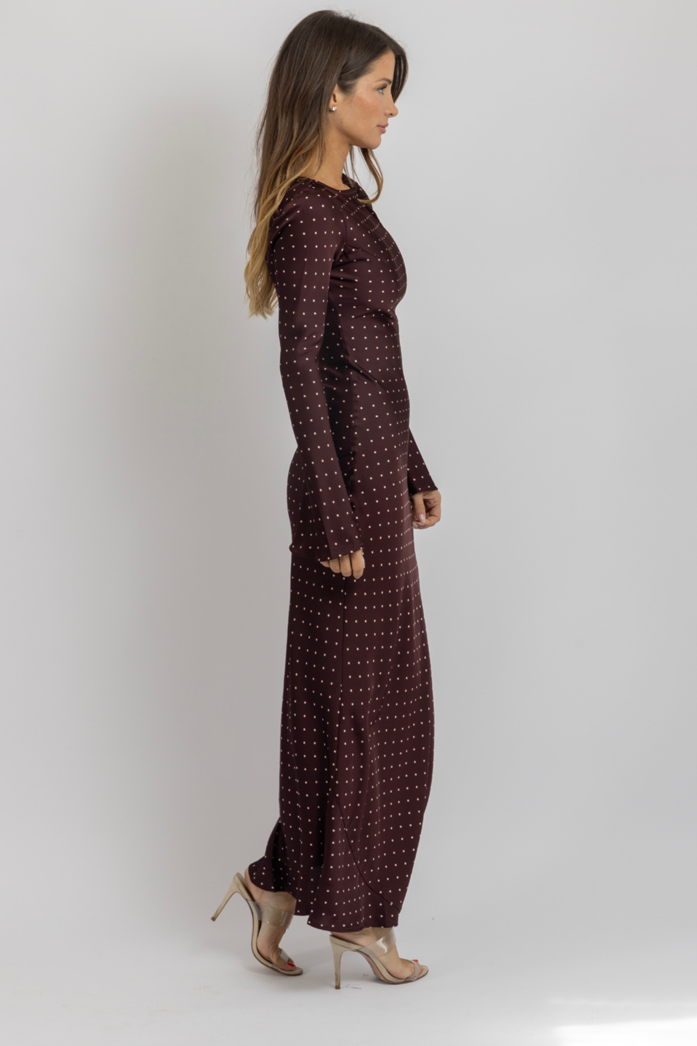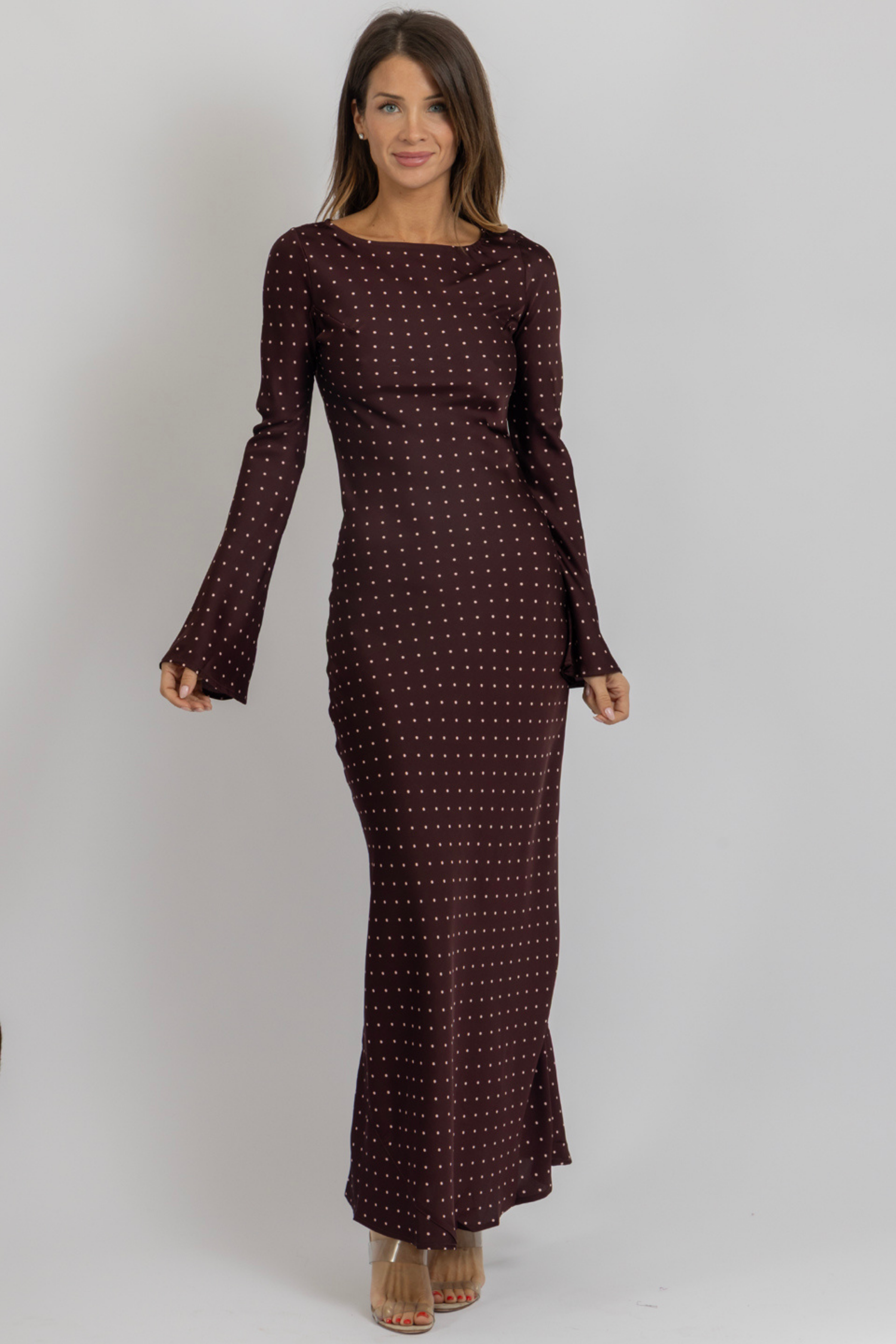 Long sleeves, Maxi dress, Dotted, Flare sleeves, Satinlike